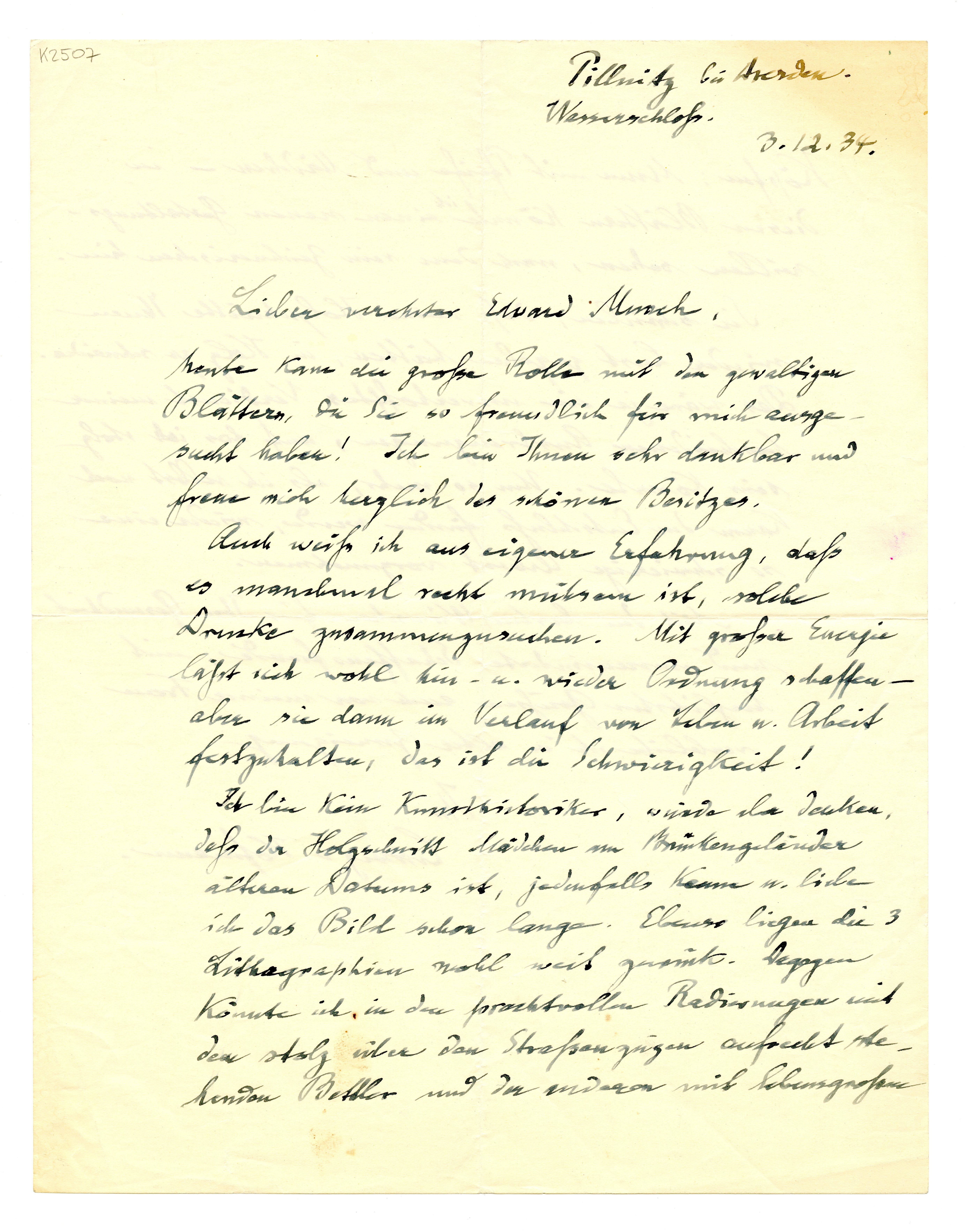 MM K 2507, Munchmuseet. Datert 03.12.1934. Brev fra Ludwig von Hofmann.