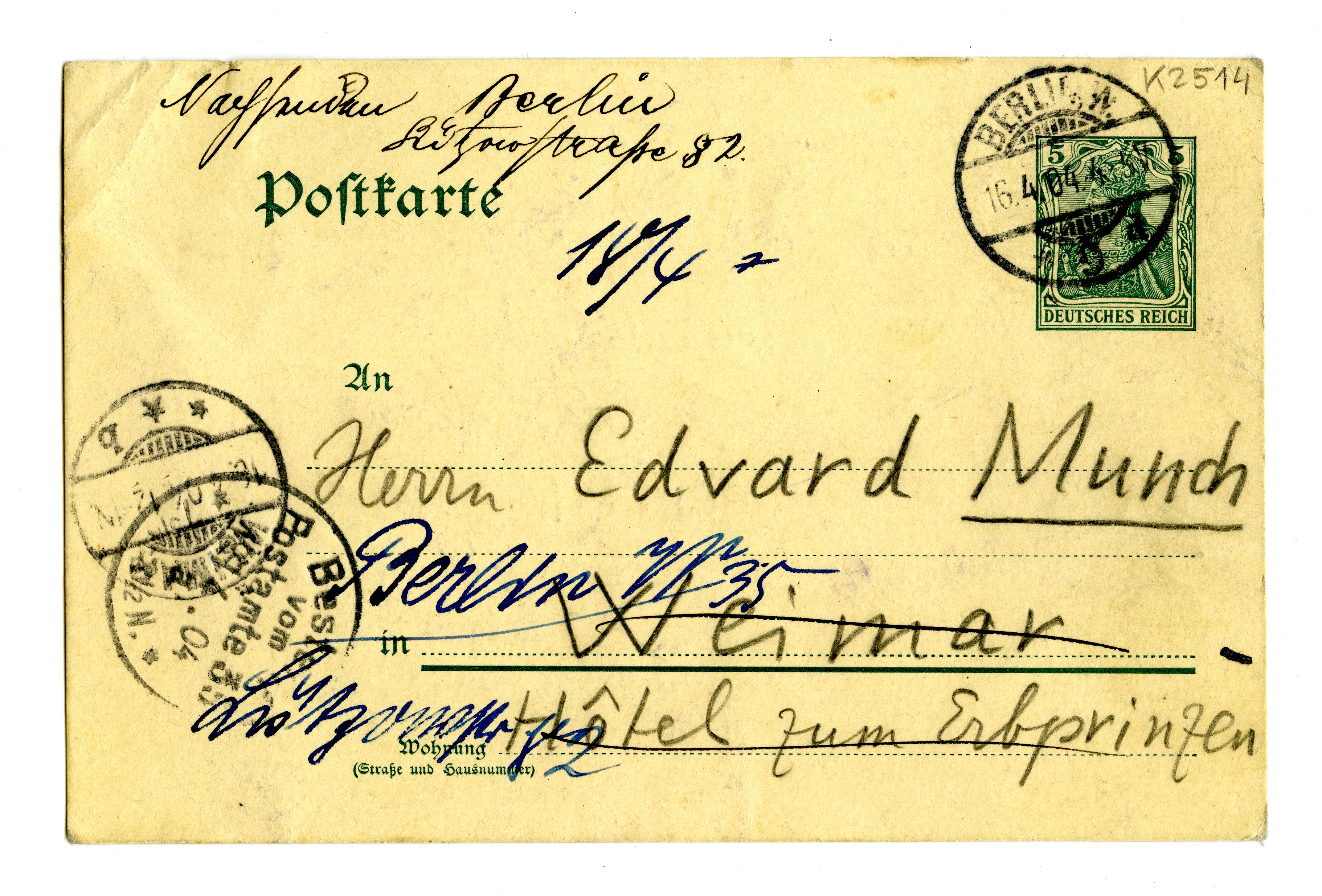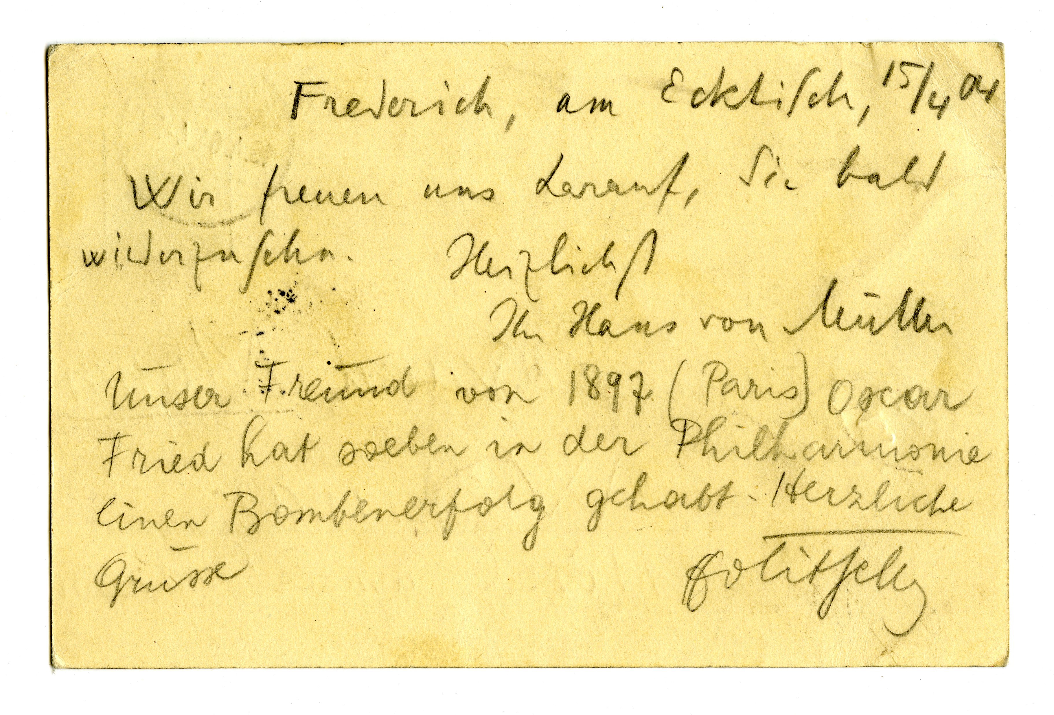 MM K 2514, Munchmuseet. Datert 15.04.1904. Brev fra Hans Müller, Arthur von Holitscher.