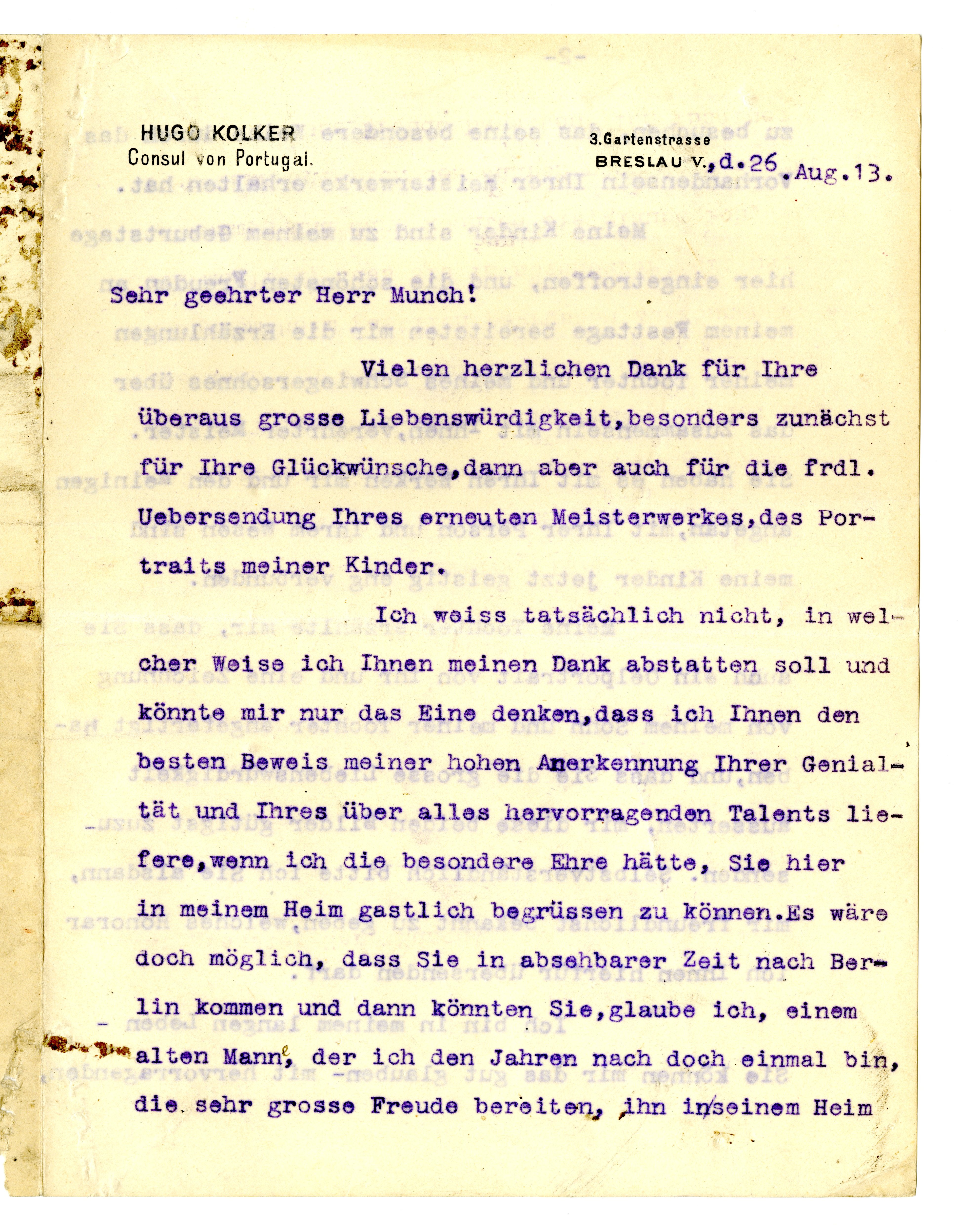 MM K 2562, Munchmuseet. Datert 26.08.1913. Brev fra Hugo Kolker.