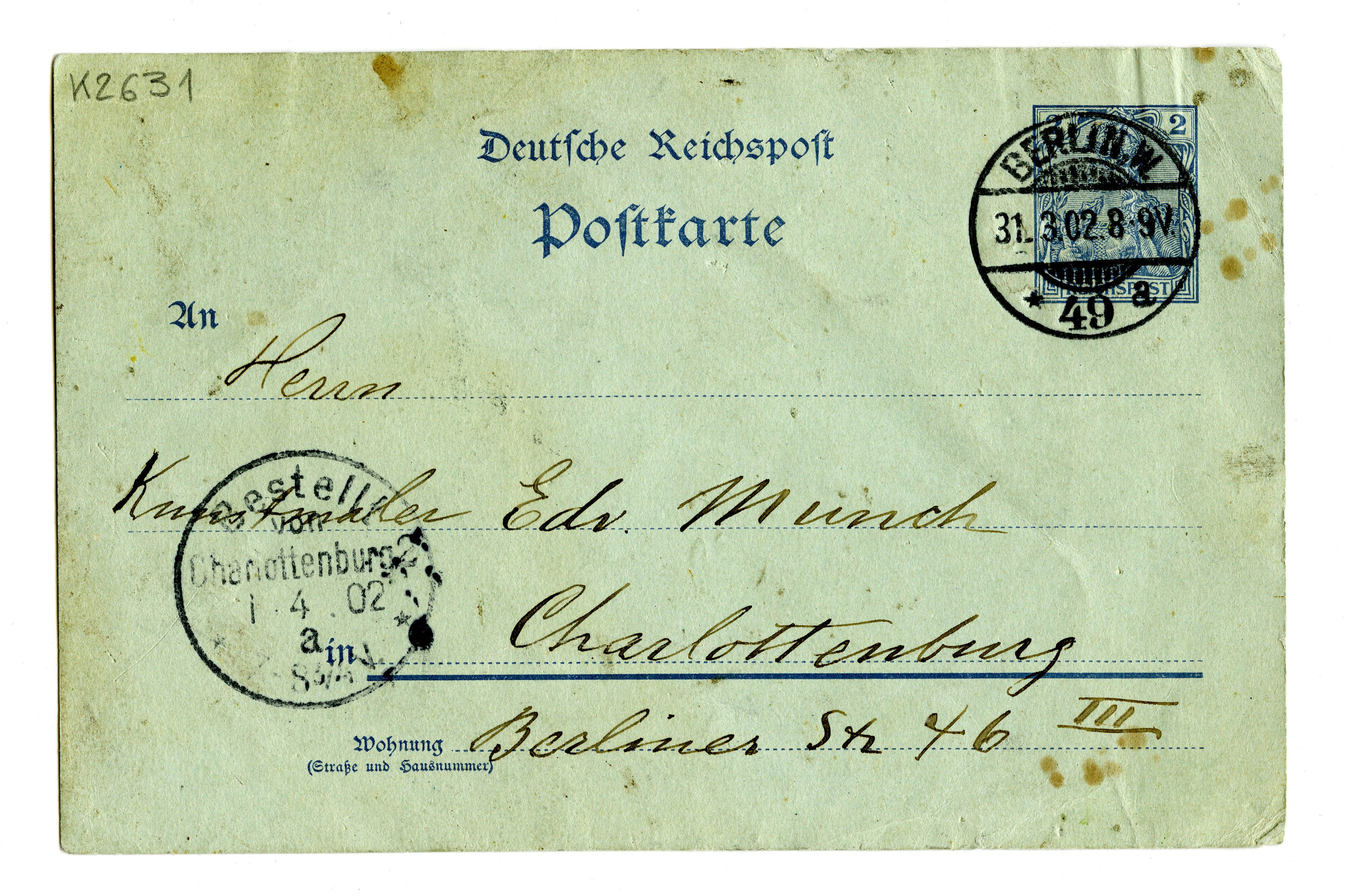 MM K 2631, Munchmuseet. Datert 31.03.1902. Brev fra Albert Kollmann.