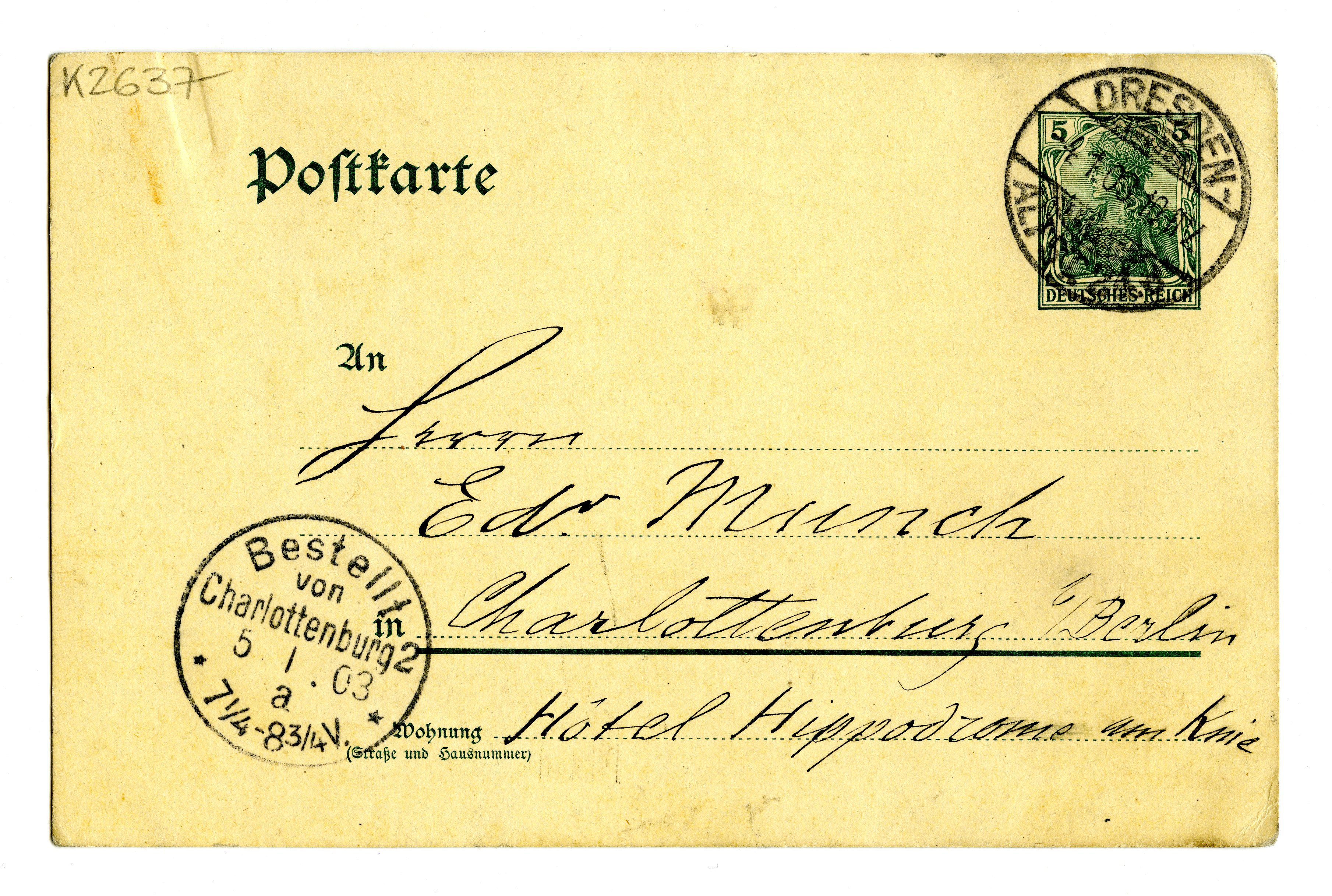 MM K 2637, Munchmuseet. Datert 04.01.1903. Brev fra Albert Kollmann.