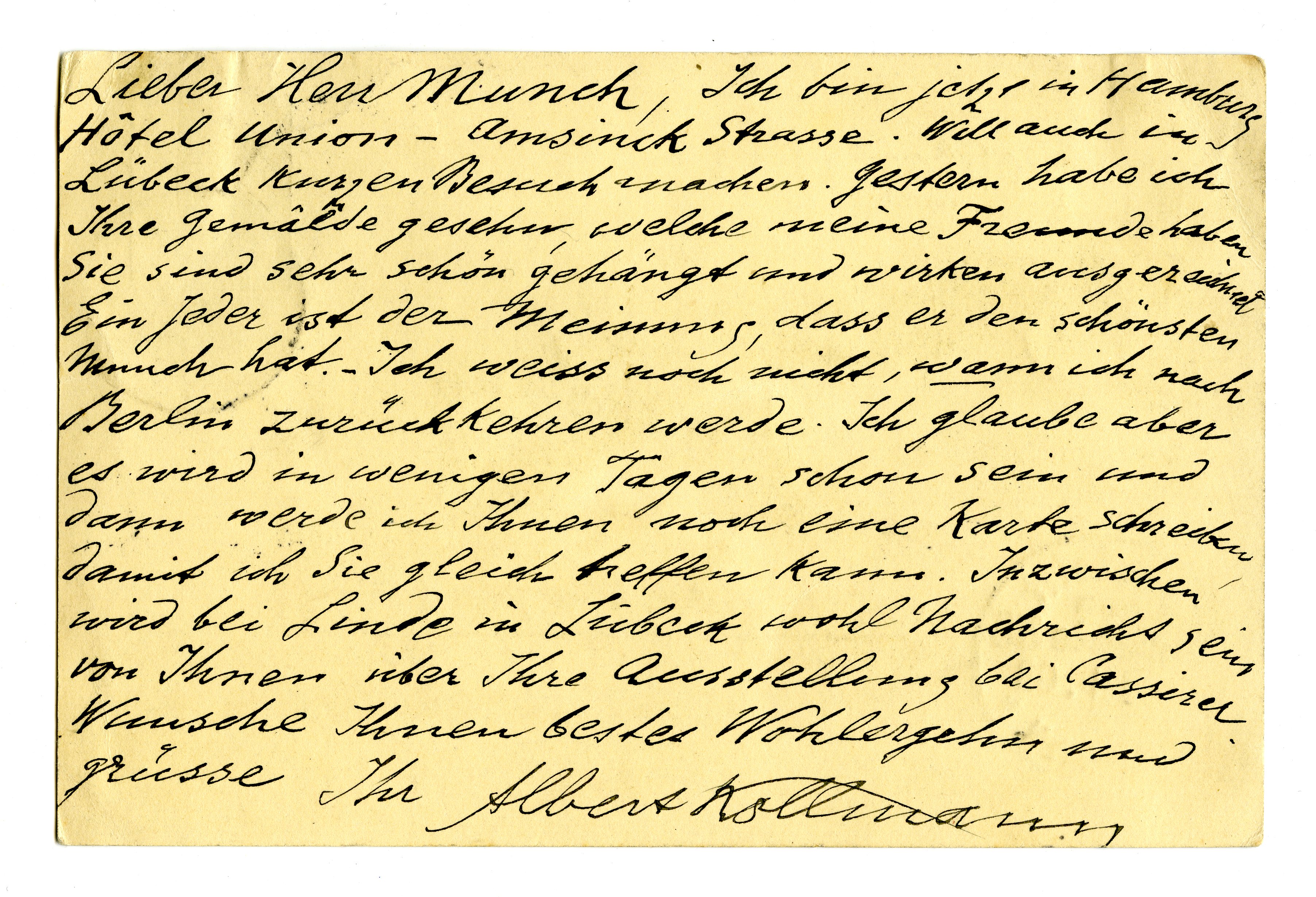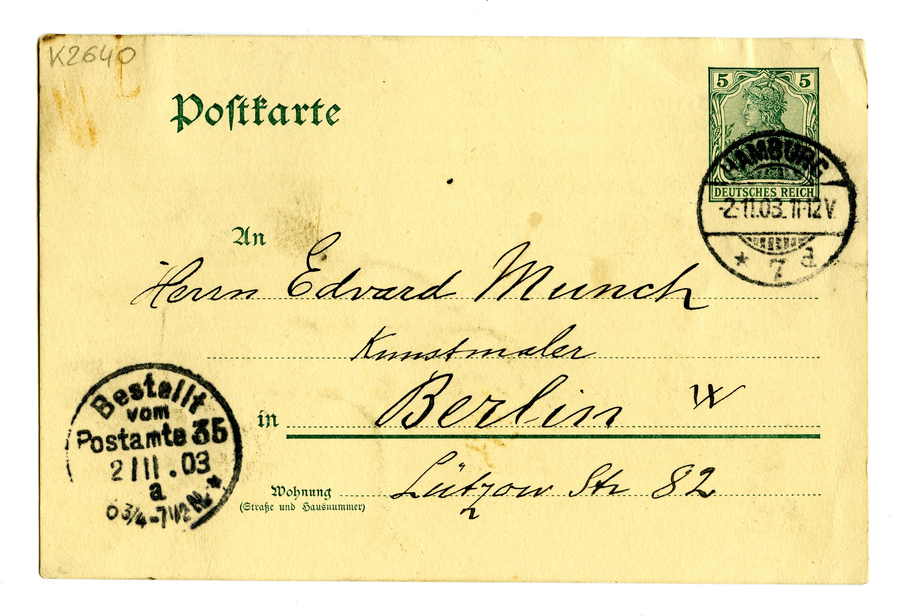 MM K 2640, Munchmuseet. Datert 02.11.1903. Brev fra Albert Kollmann.