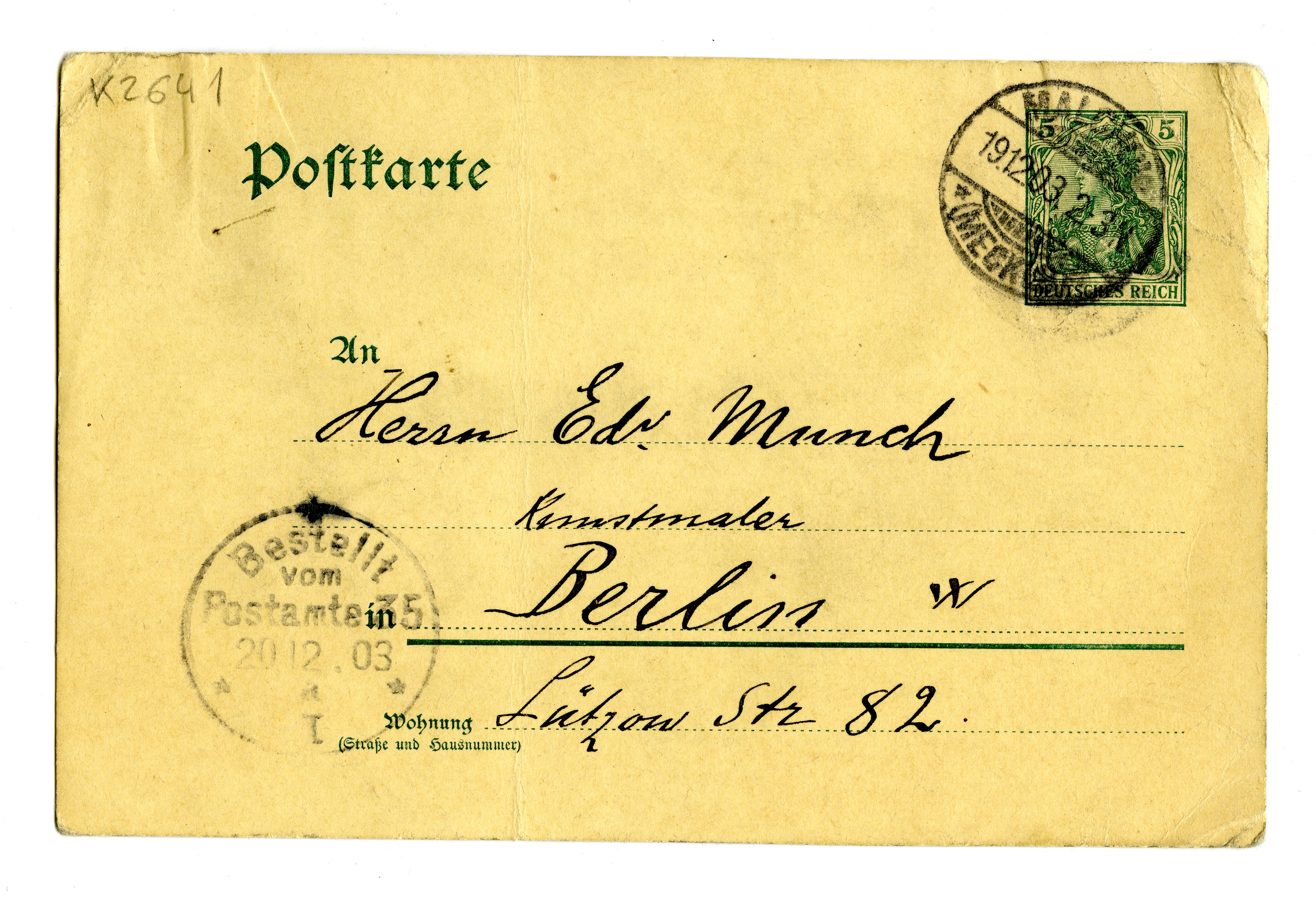 MM K 2641, Munchmuseet. Datert 19.12.1903. Brev fra Albert Kollmann.