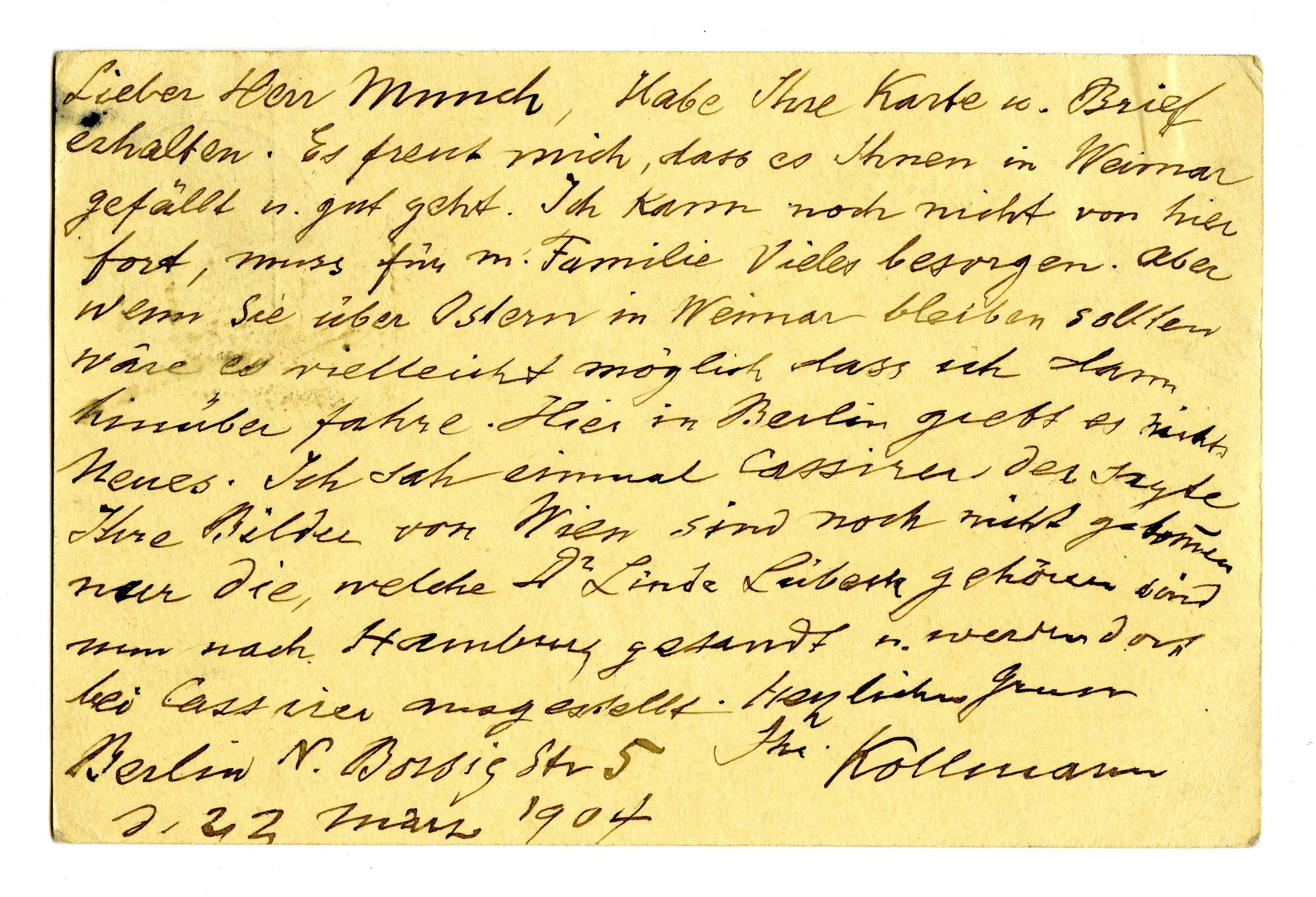 MM K 2646, Munchmuseet. Datert 22.03.1904. Brev fra Albert Kollmann.
