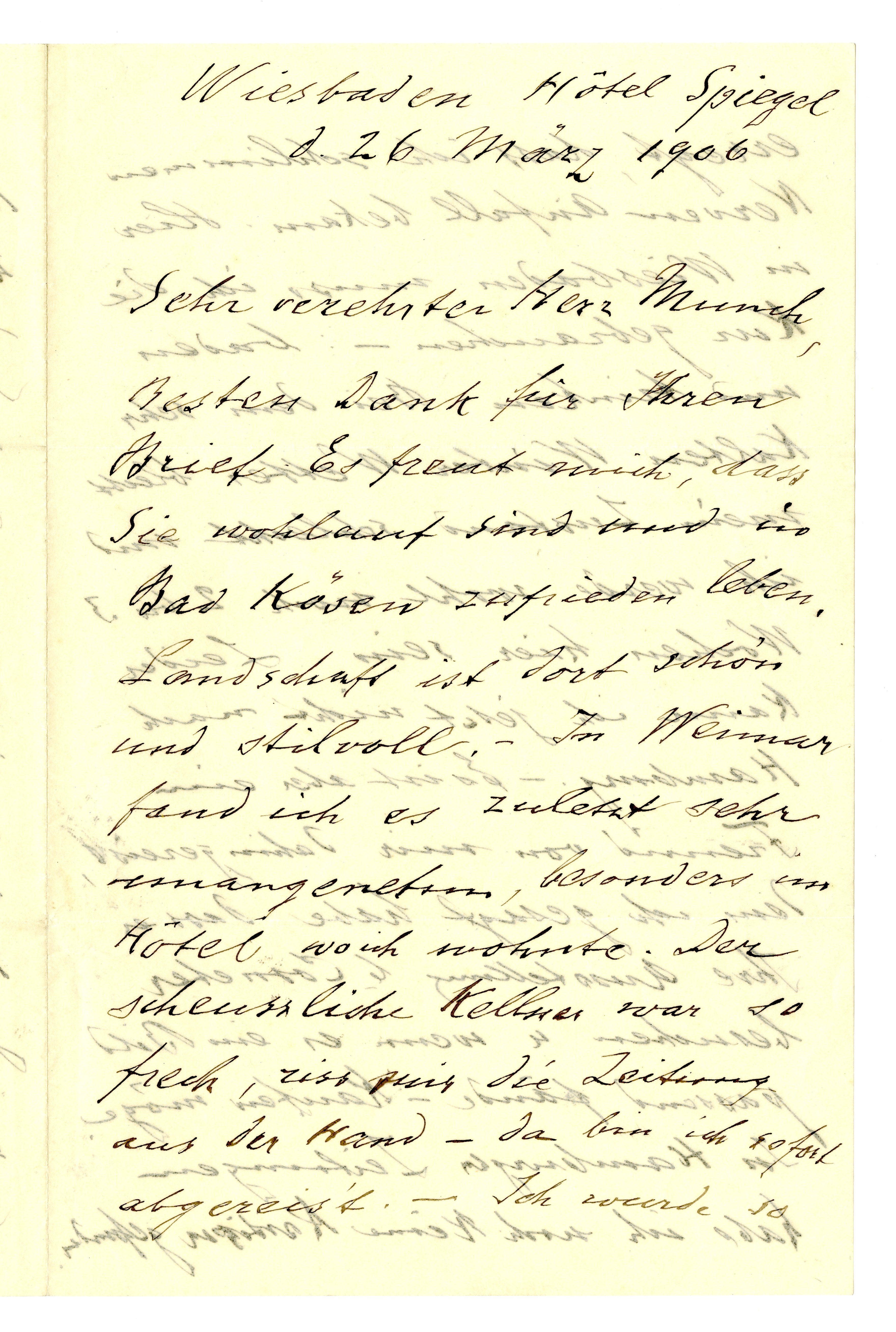 MM K 2657, Munchmuseet. Datert 26.03.1906. Brev fra Albert Kollmann.