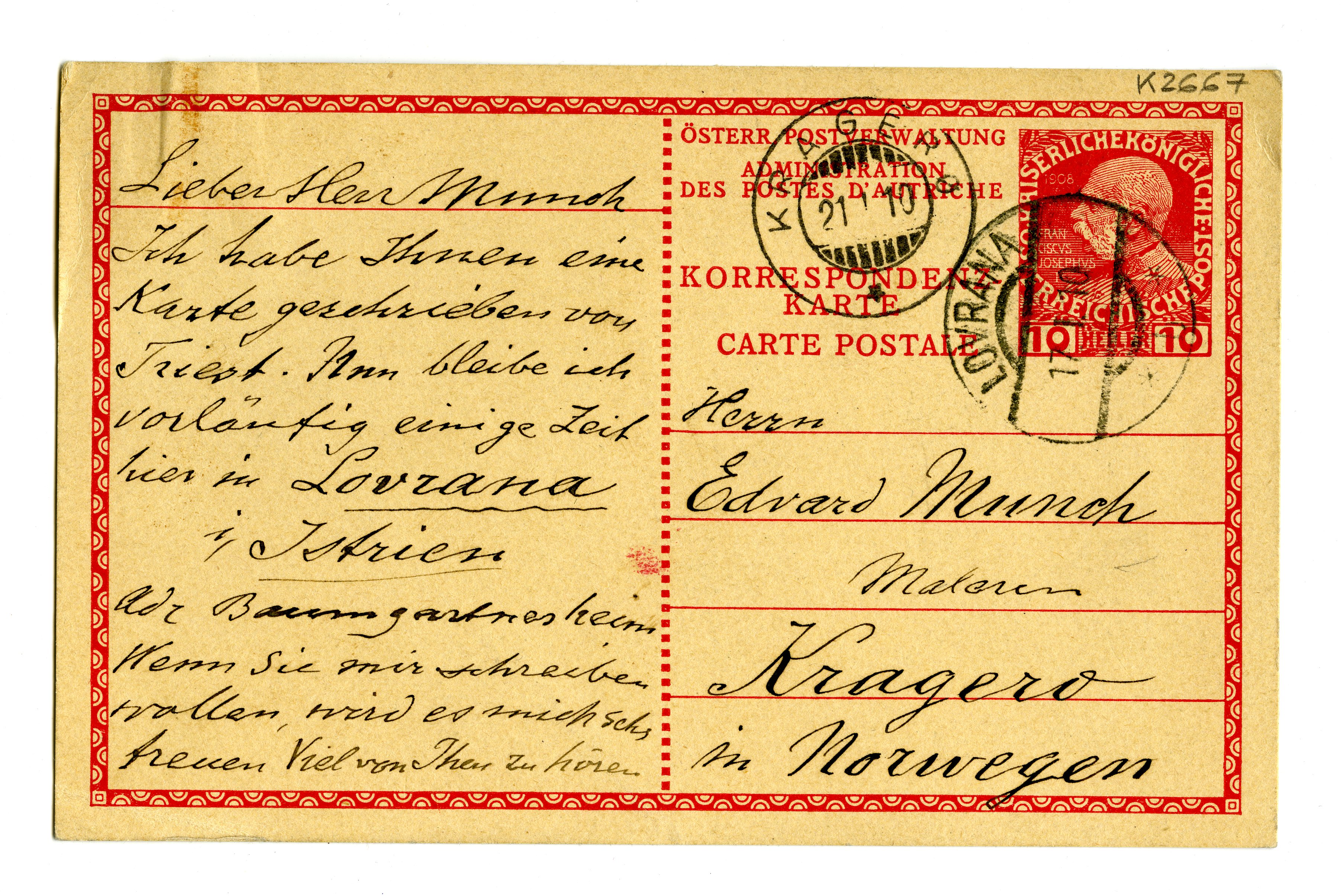MM K 2667, Munchmuseet. Datert 17.01.1910. Brev fra Albert Kollmann.