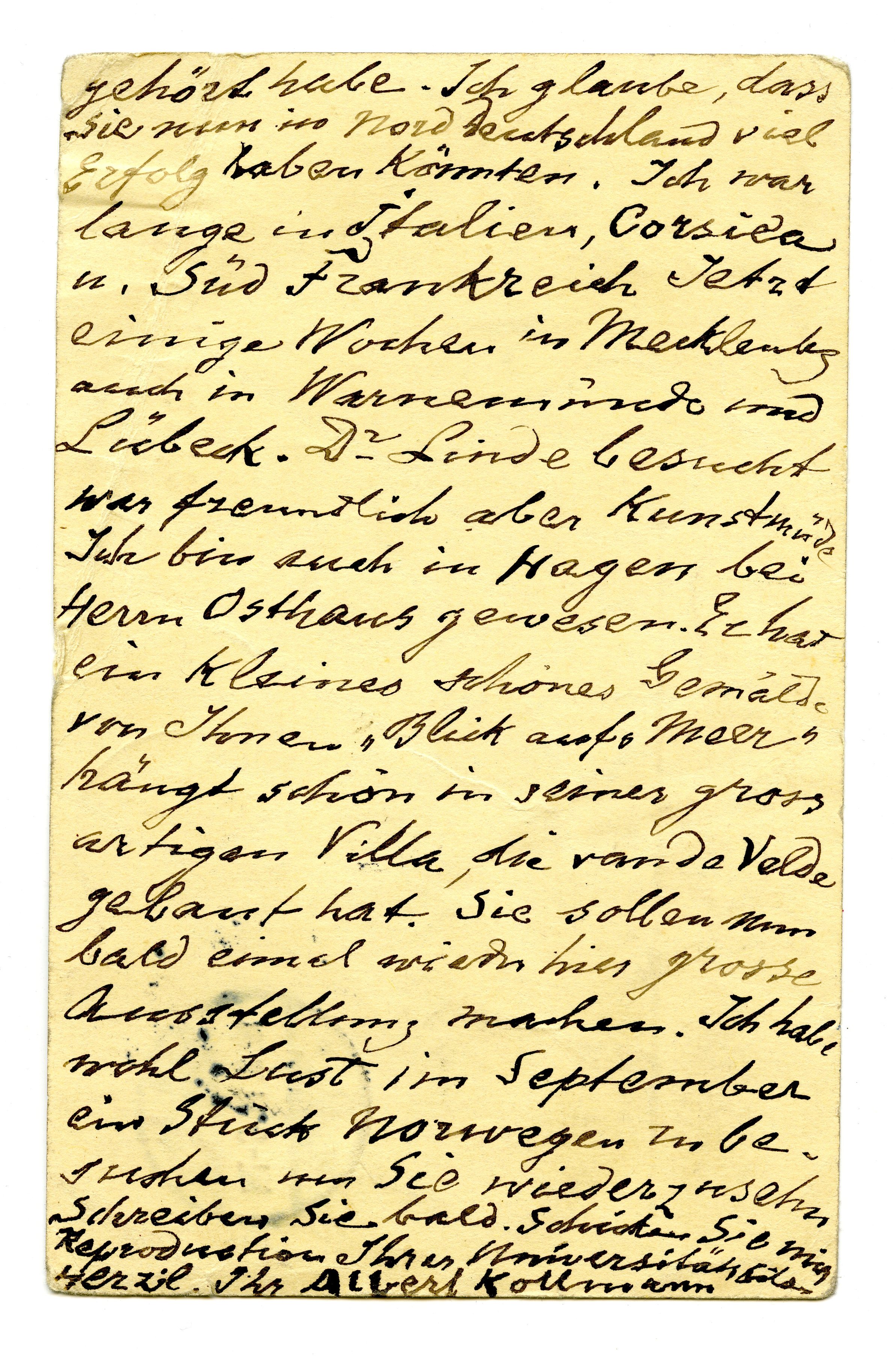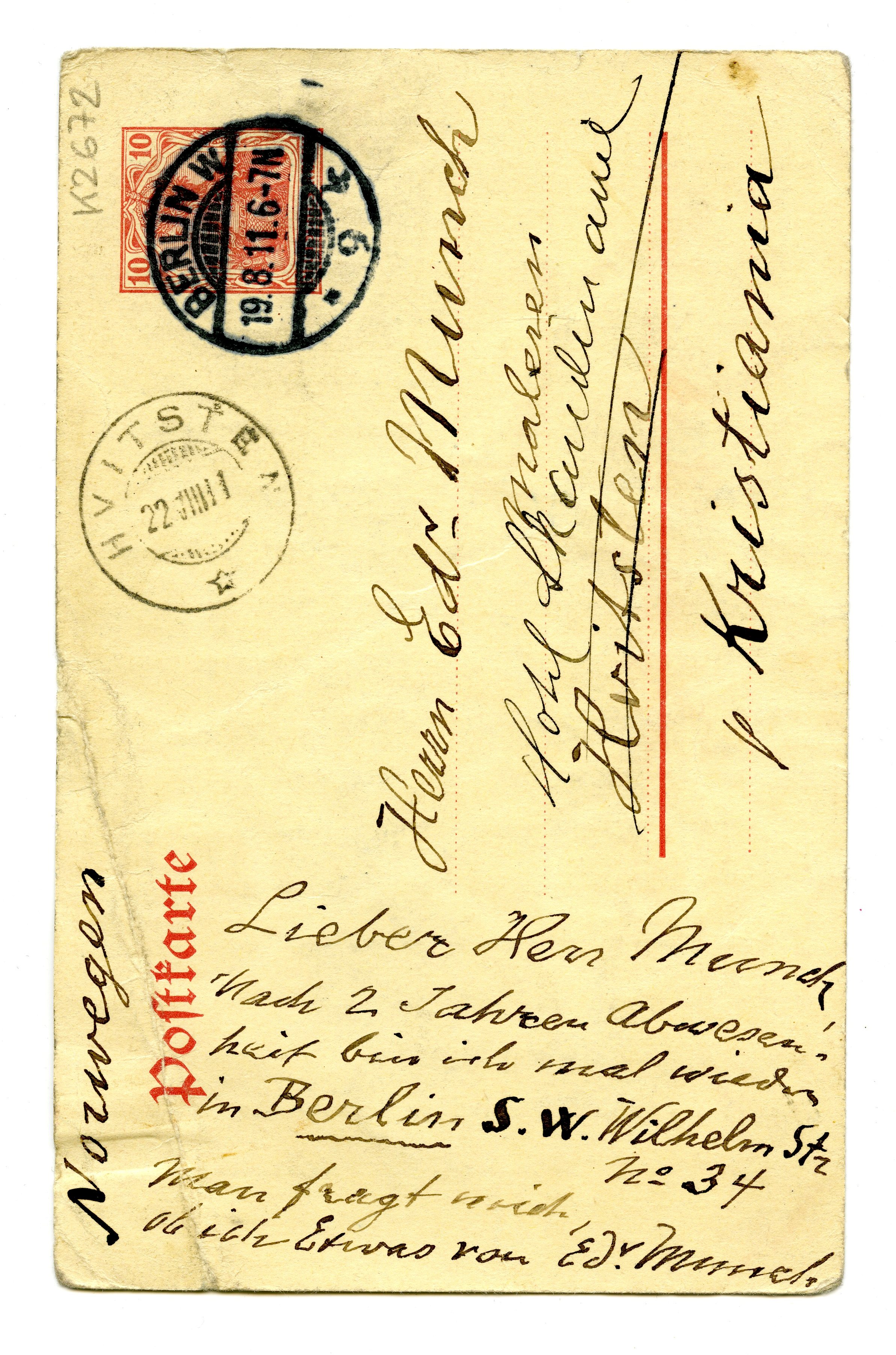MM K 2672, Munchmuseet. Datert 19.08.1911. Brev fra Albert Kollmann.