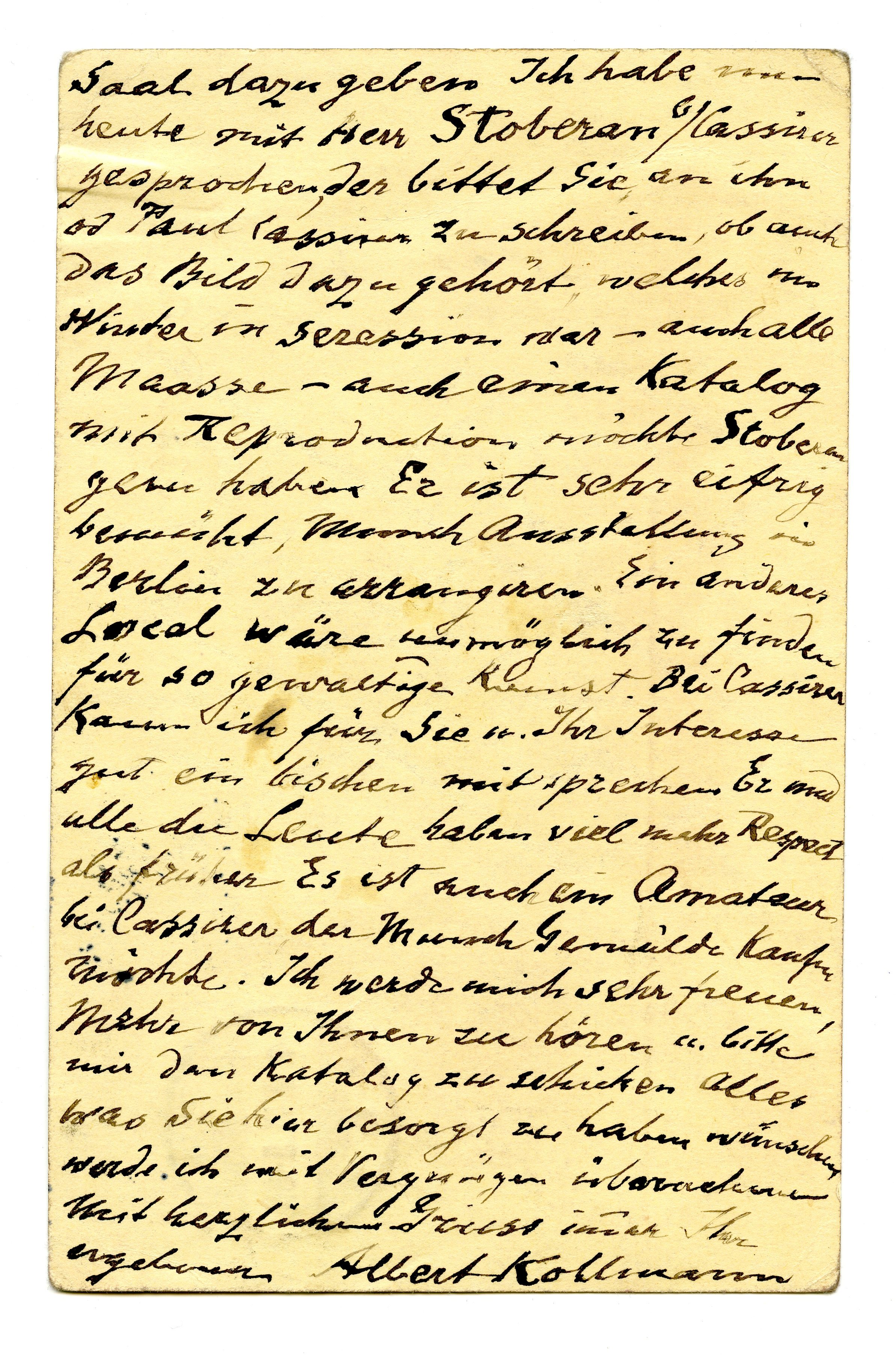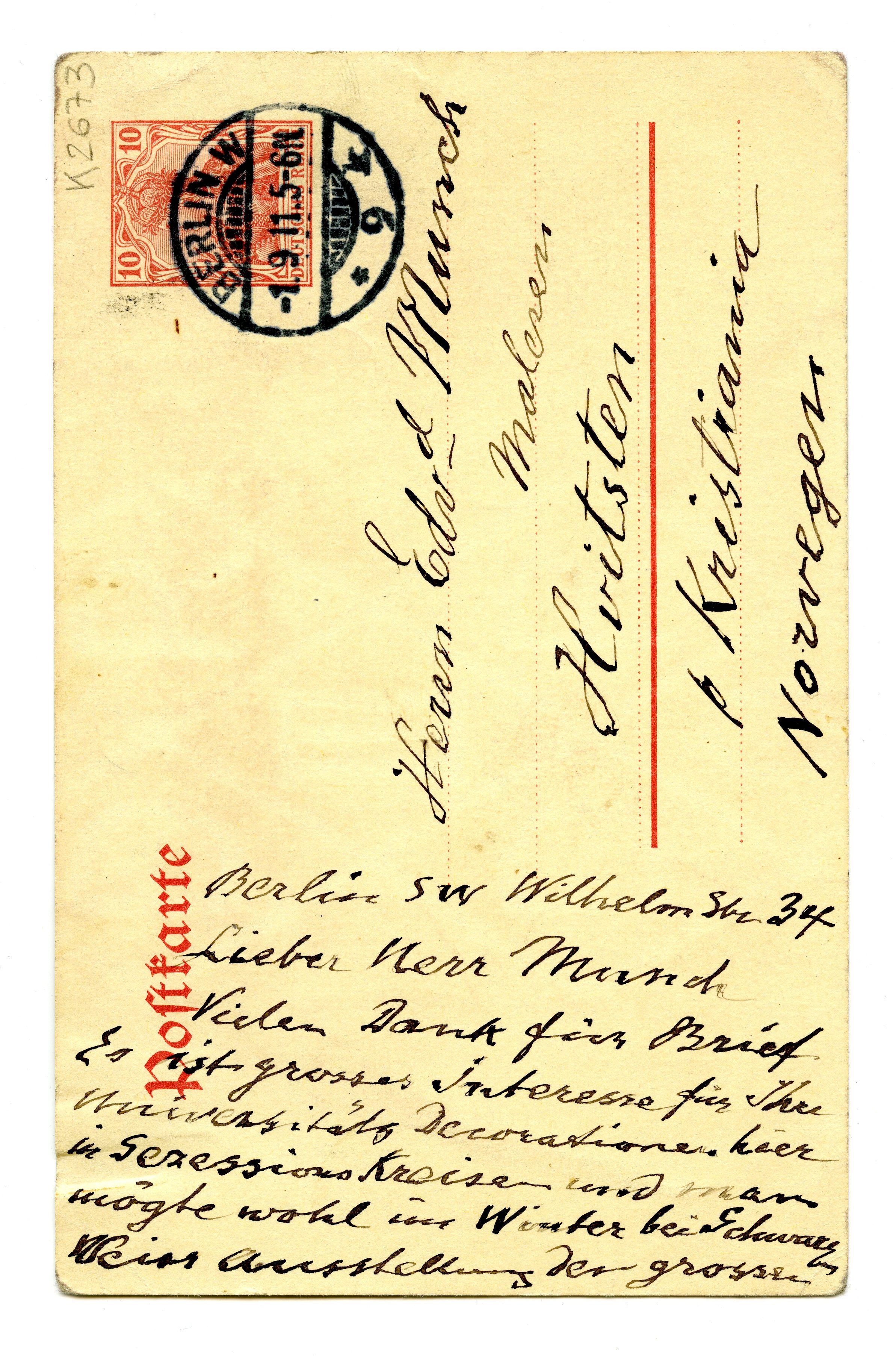 MM K 2673, Munchmuseet. Datert 01.09.1911. Brev fra Albert Kollmann.
