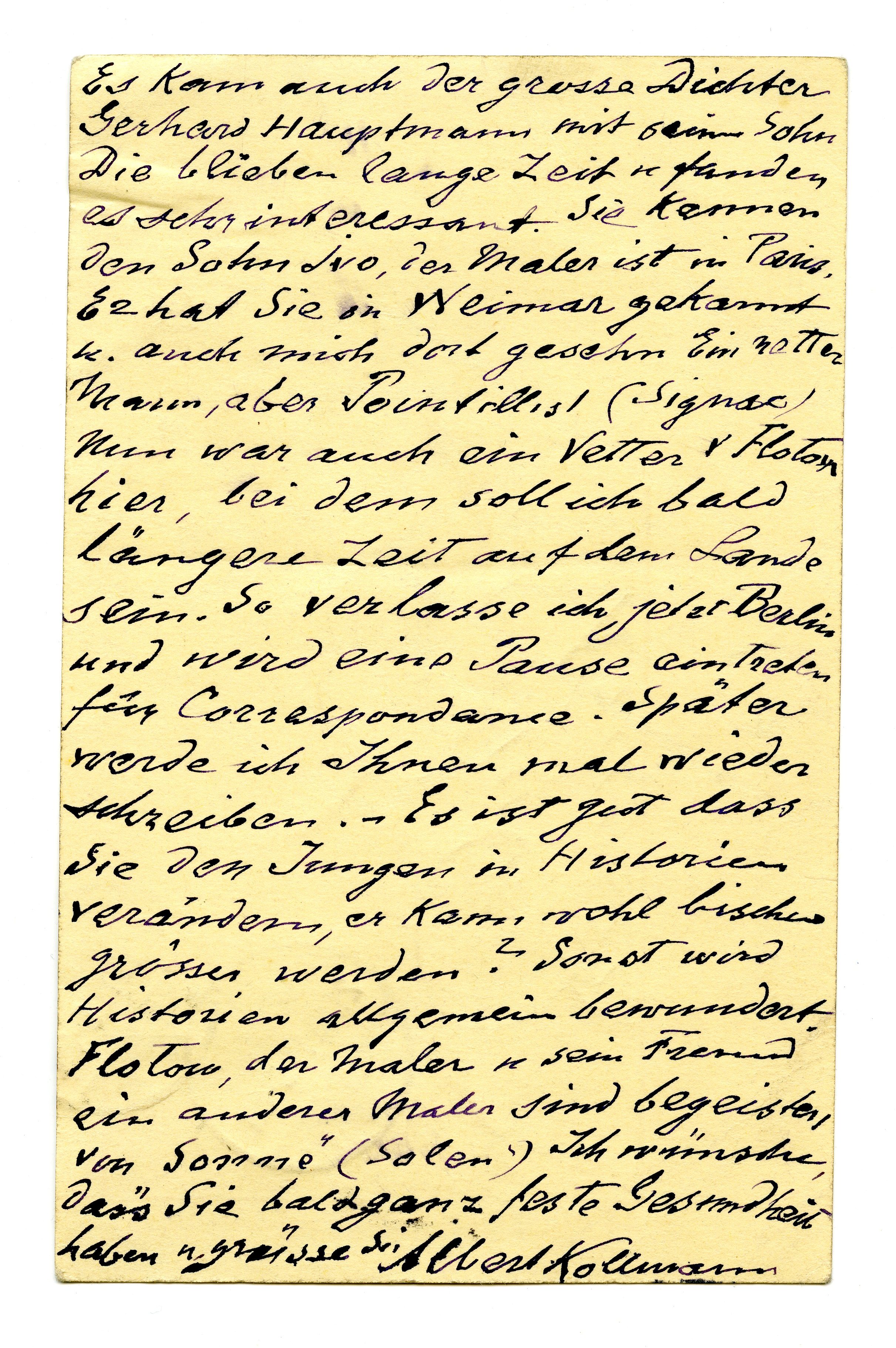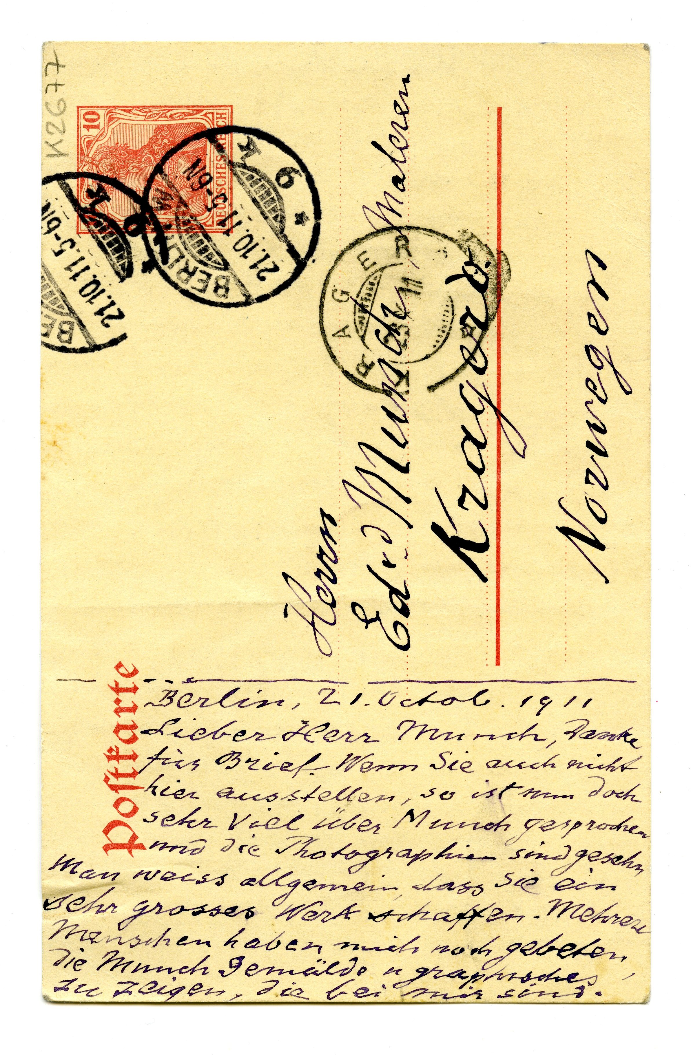 MM K 2677, Munchmuseet. Datert 21.10.1911. Brev fra Albert Kollmann.