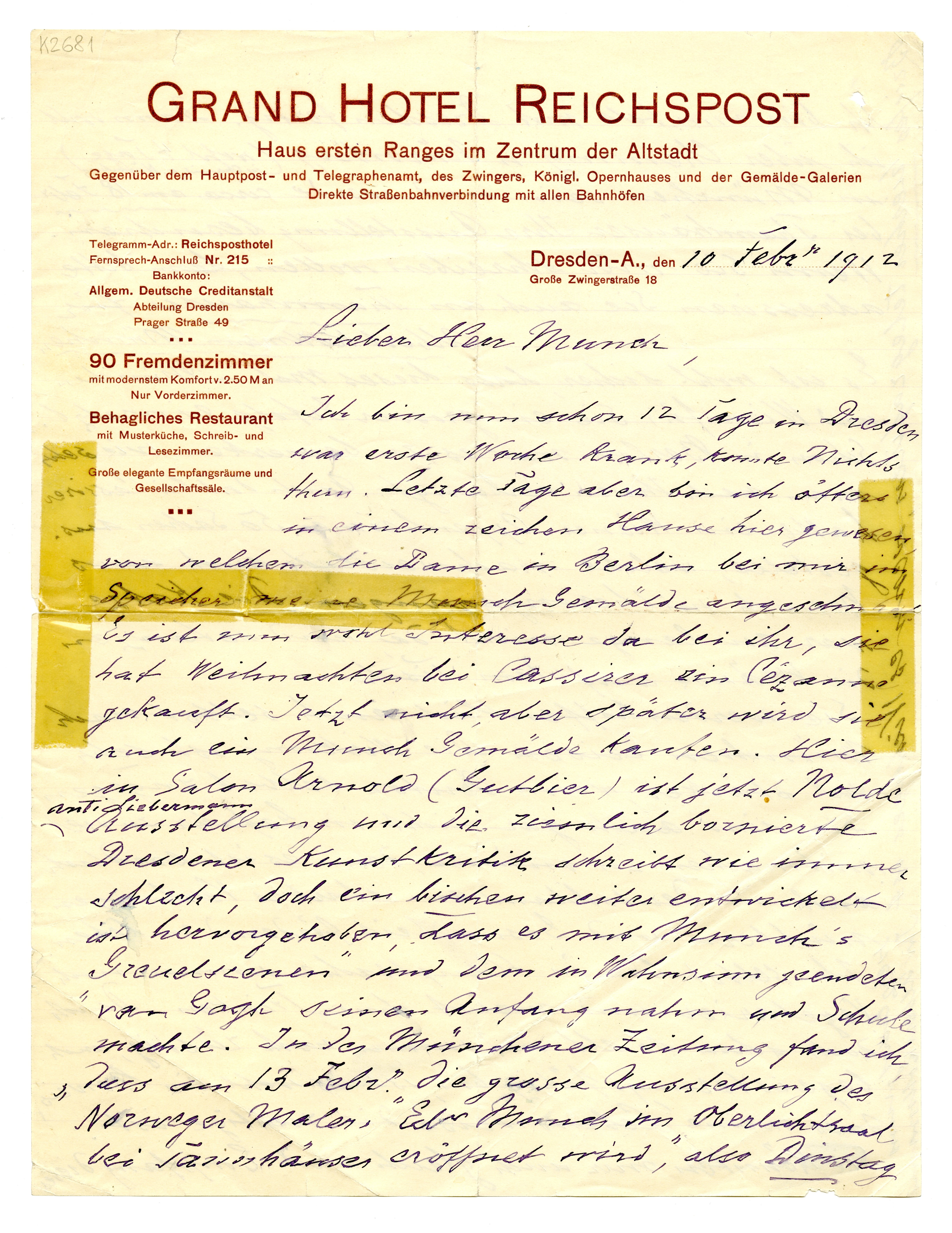 MM K 2681, Munchmuseet. Datert 10.02.1912. Brev fra Albert Kollmann.