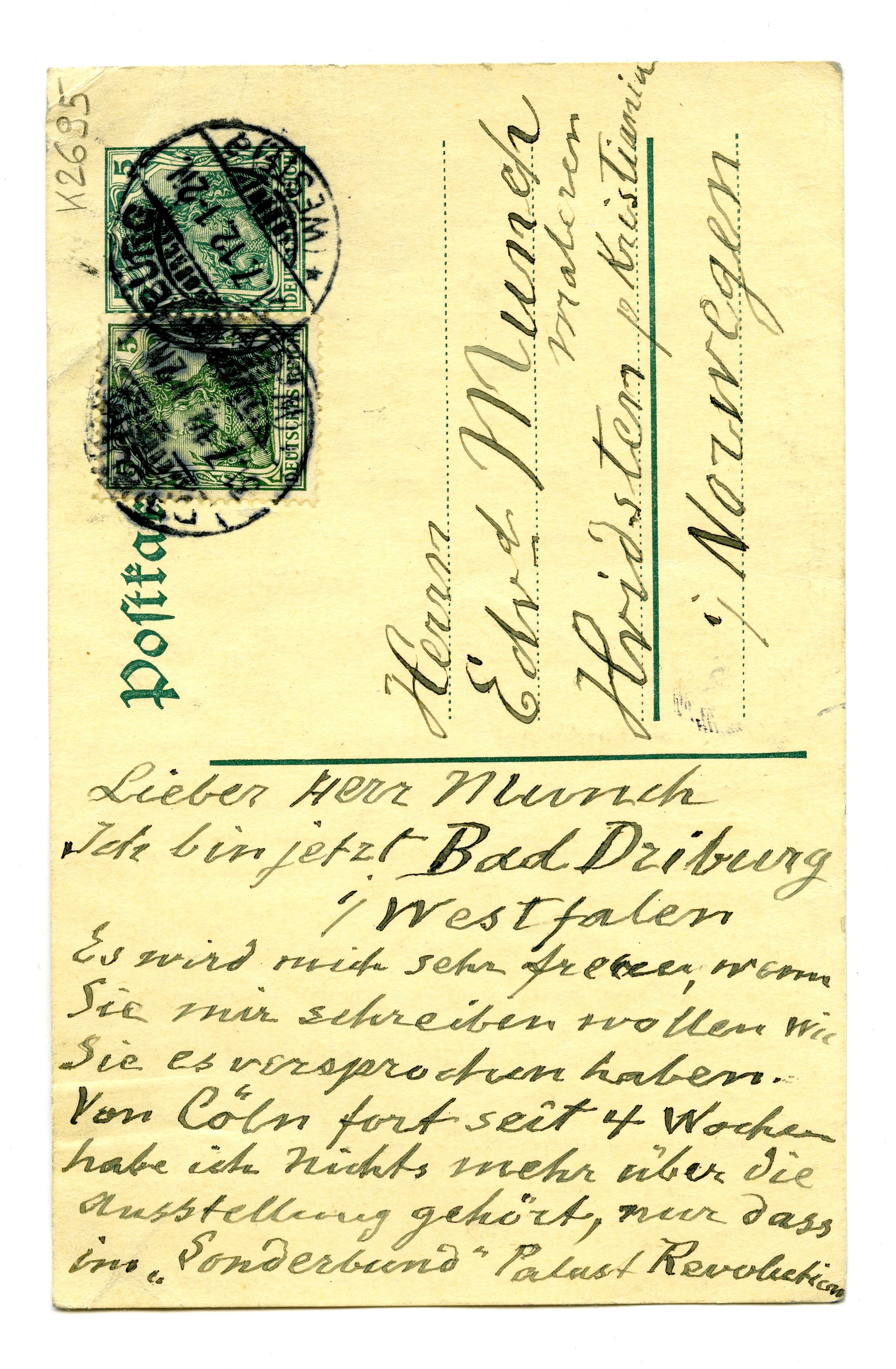 MM K 2695, Munchmuseet. Datert 31.07.1912. Brev fra Albert Kollmann.