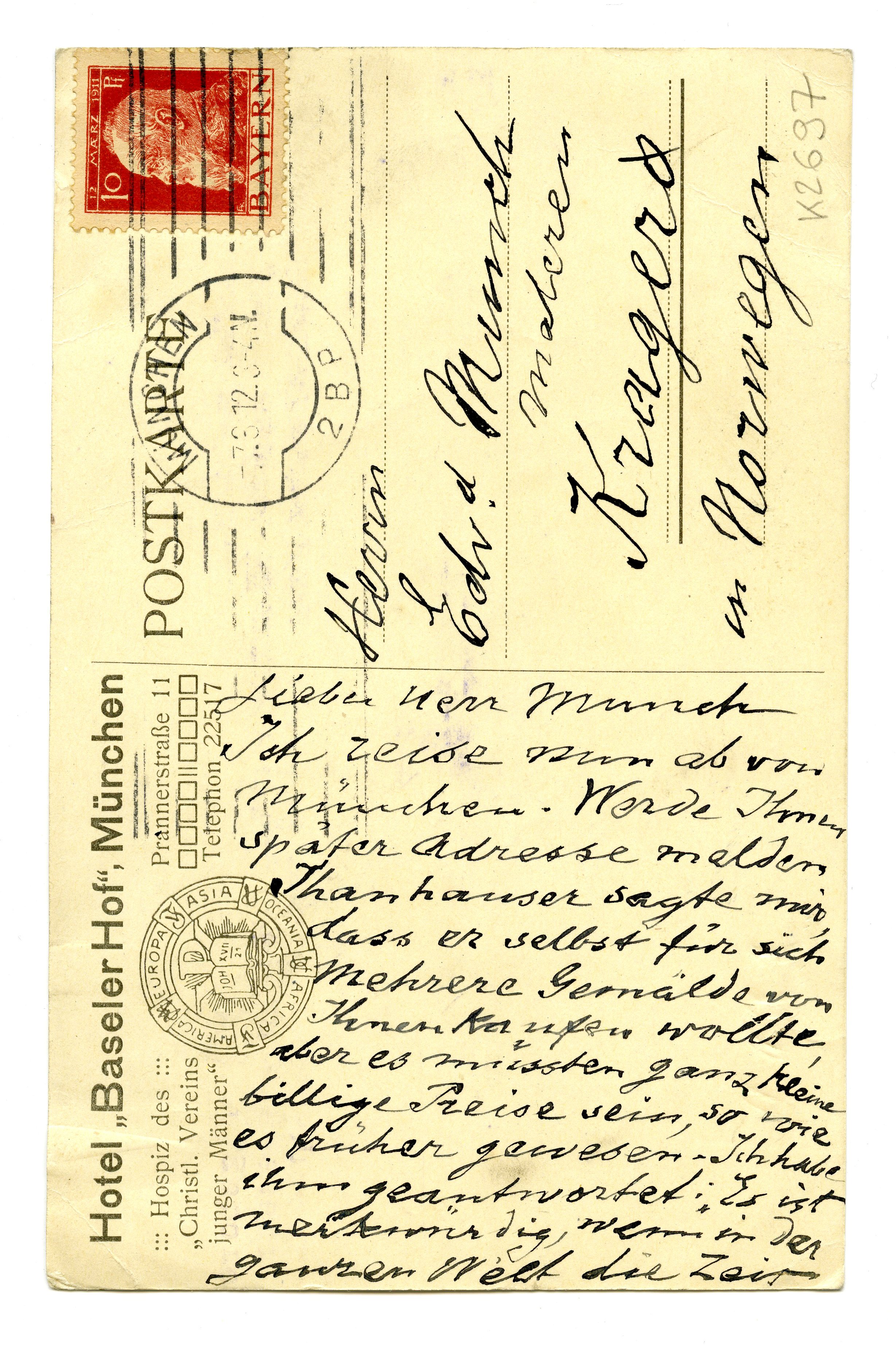 MM K 2697, Munchmuseet. Datert 07.08.1912. Brev fra Albert Kollmann.