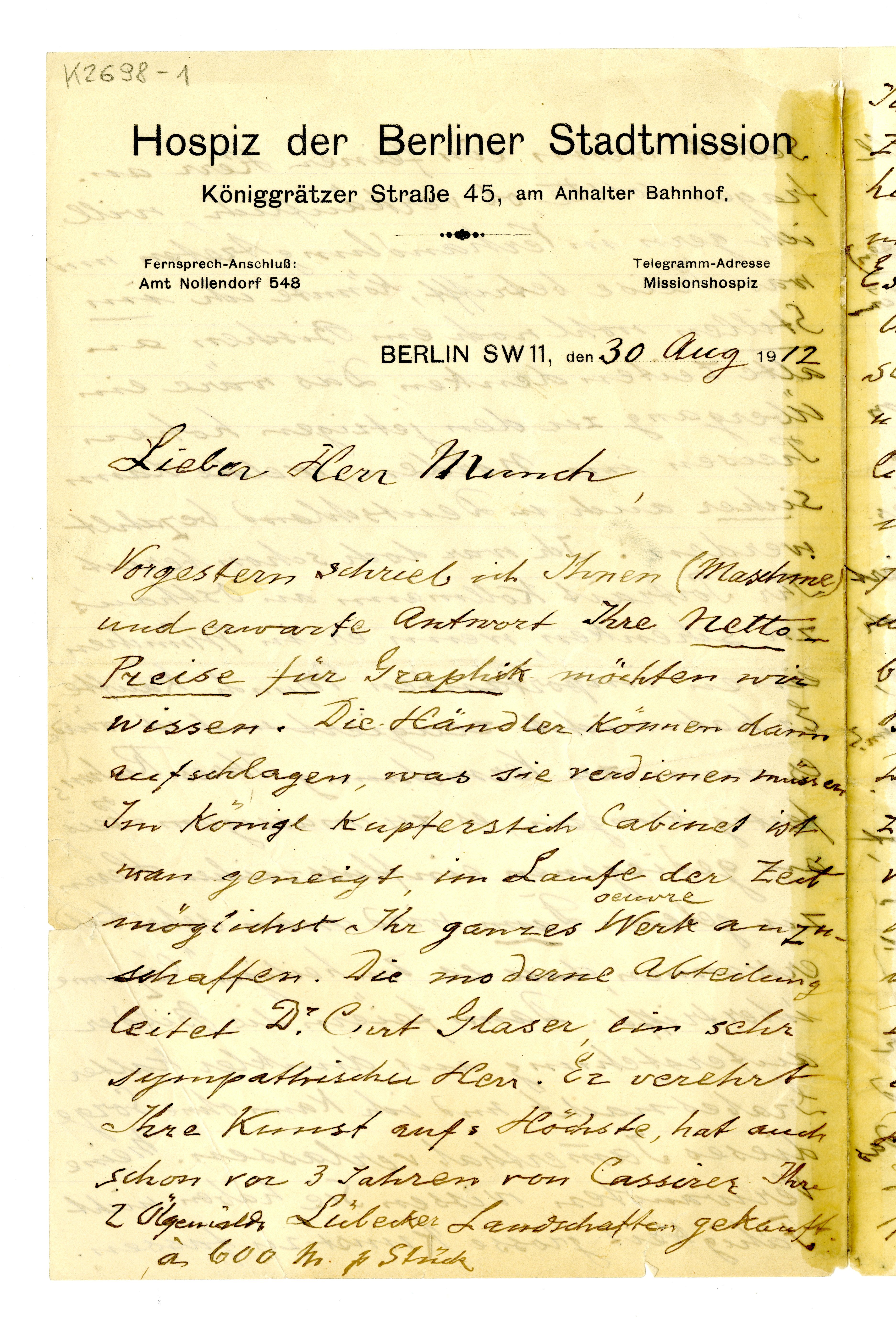 MM K 2698, Munchmuseet. Datert 30.08.1912. Brev fra Albert Kollmann.