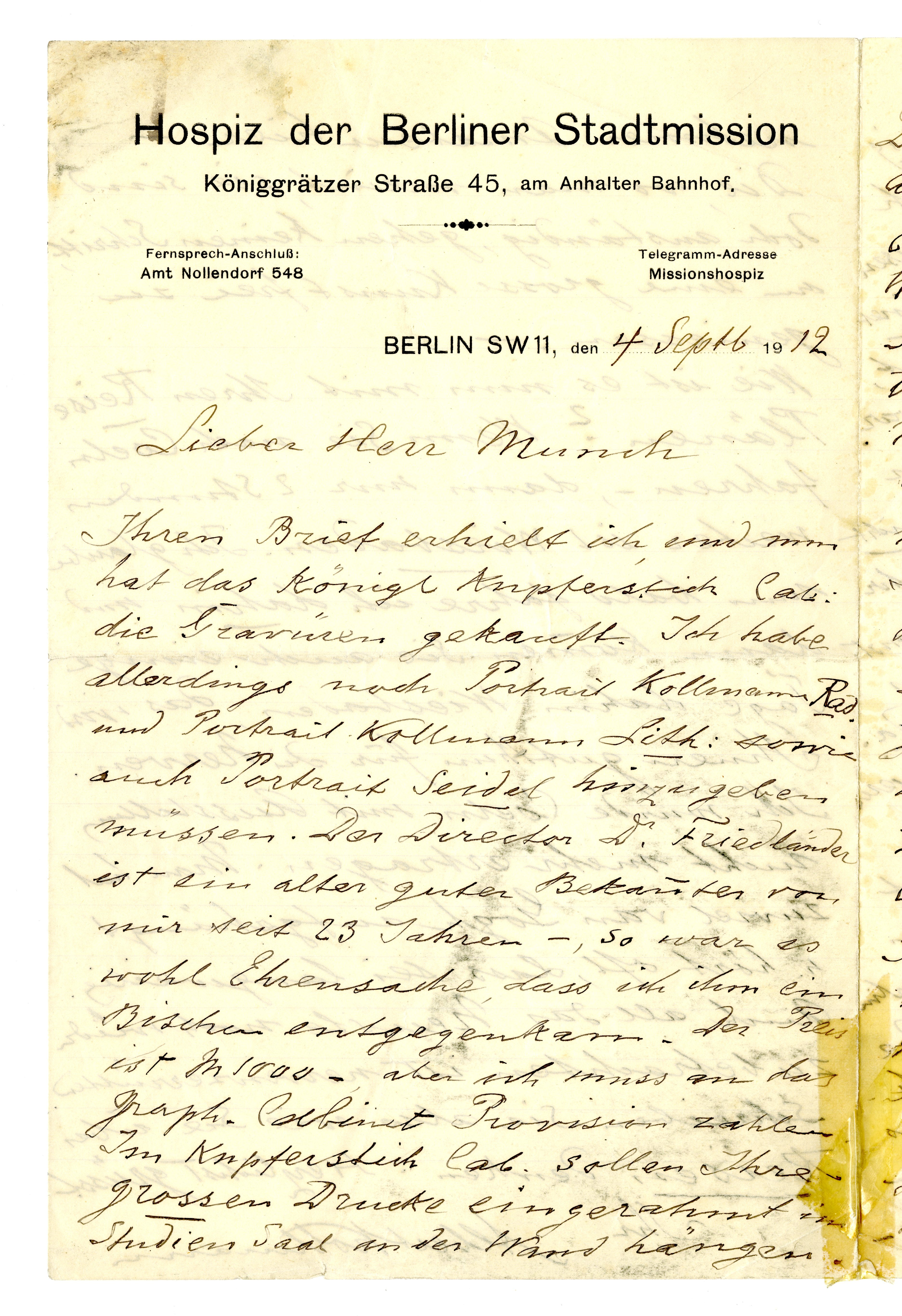 MM K 2699, Munchmuseet. Datert 04.09.1912. Brev fra Albert Kollmann.