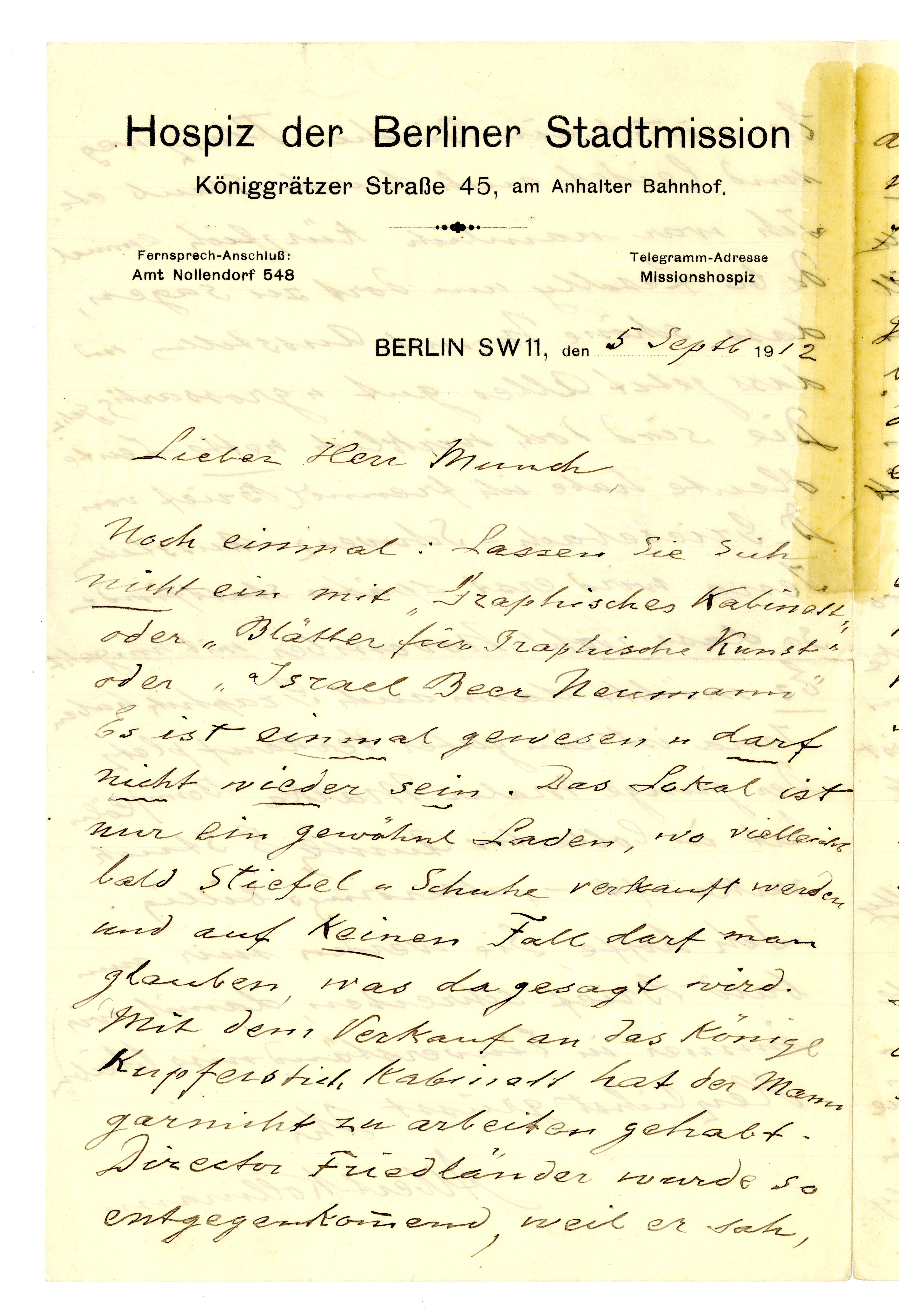 MM K 2700, Munchmuseet. Datert 05.09.1912. Brev fra Albert Kollmann.