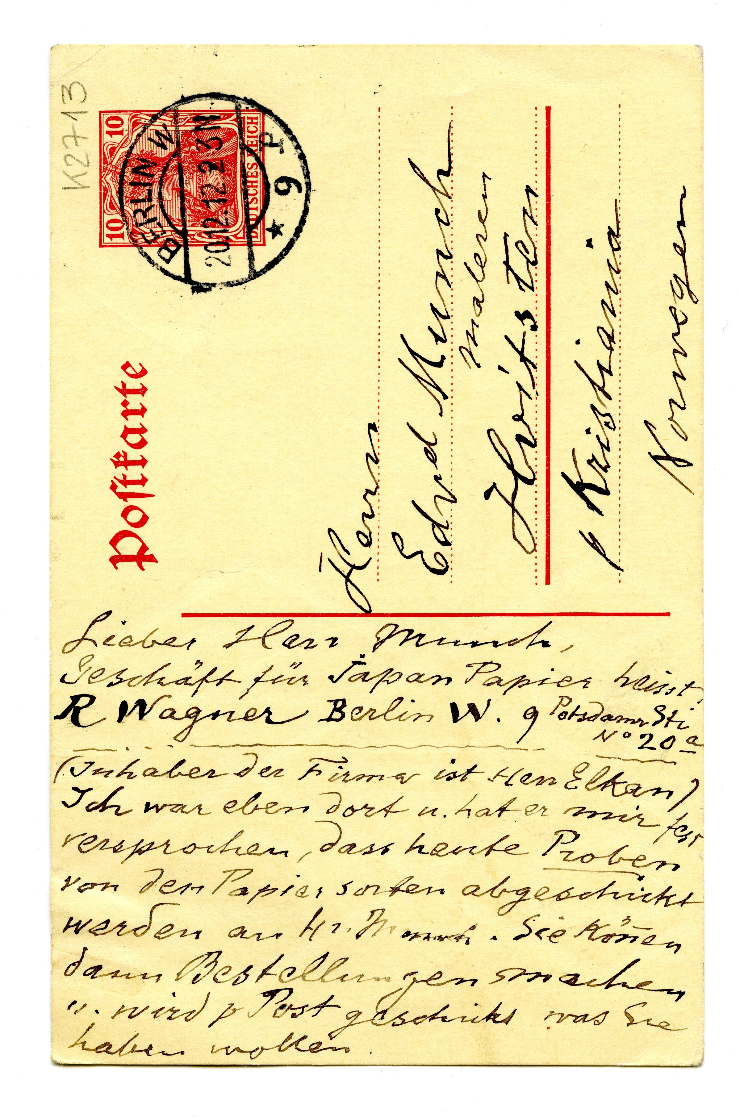 MM K 2713, Munchmuseet. Datert 20.12.1912. Brev fra Albert Kollmann.