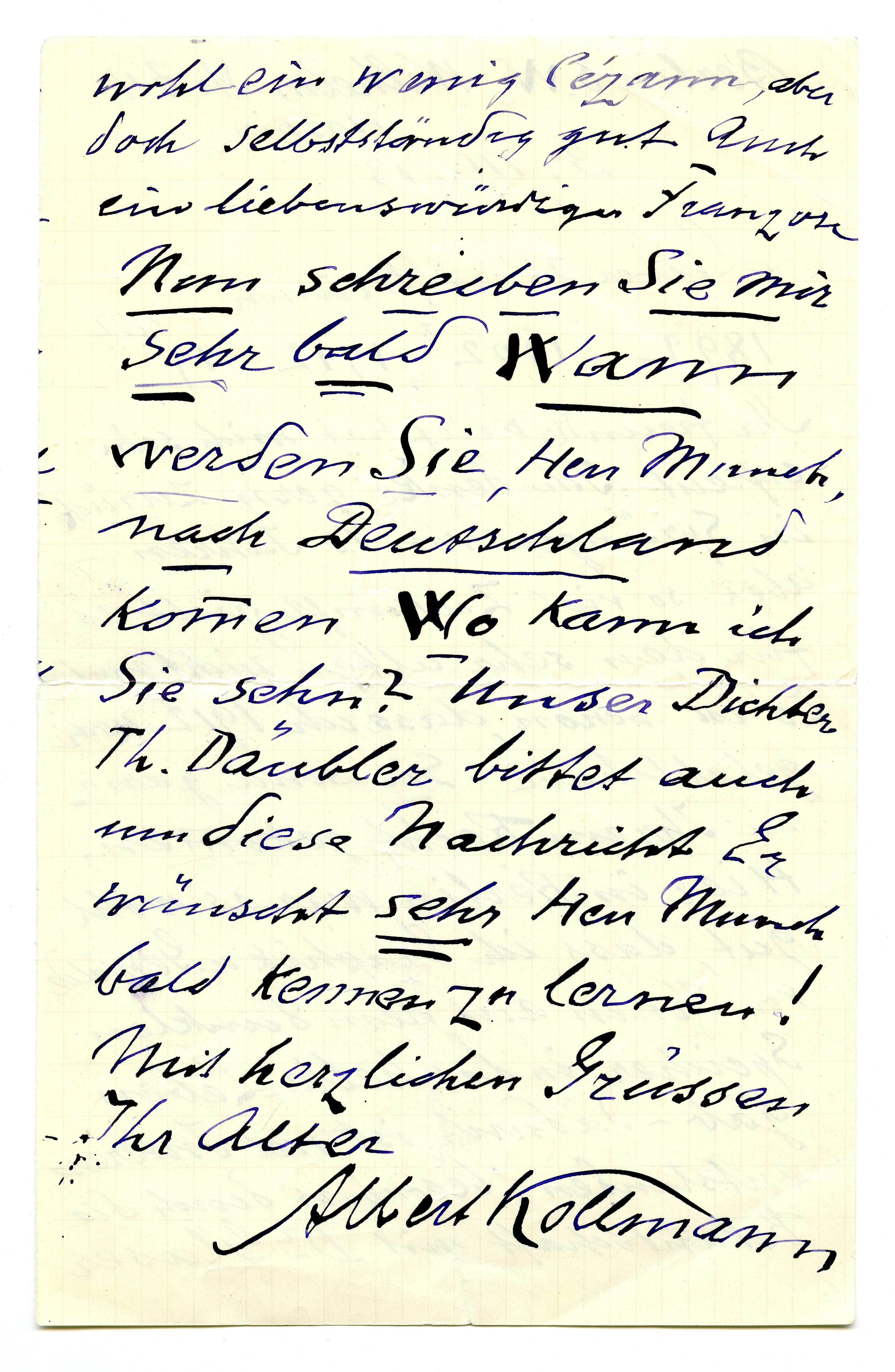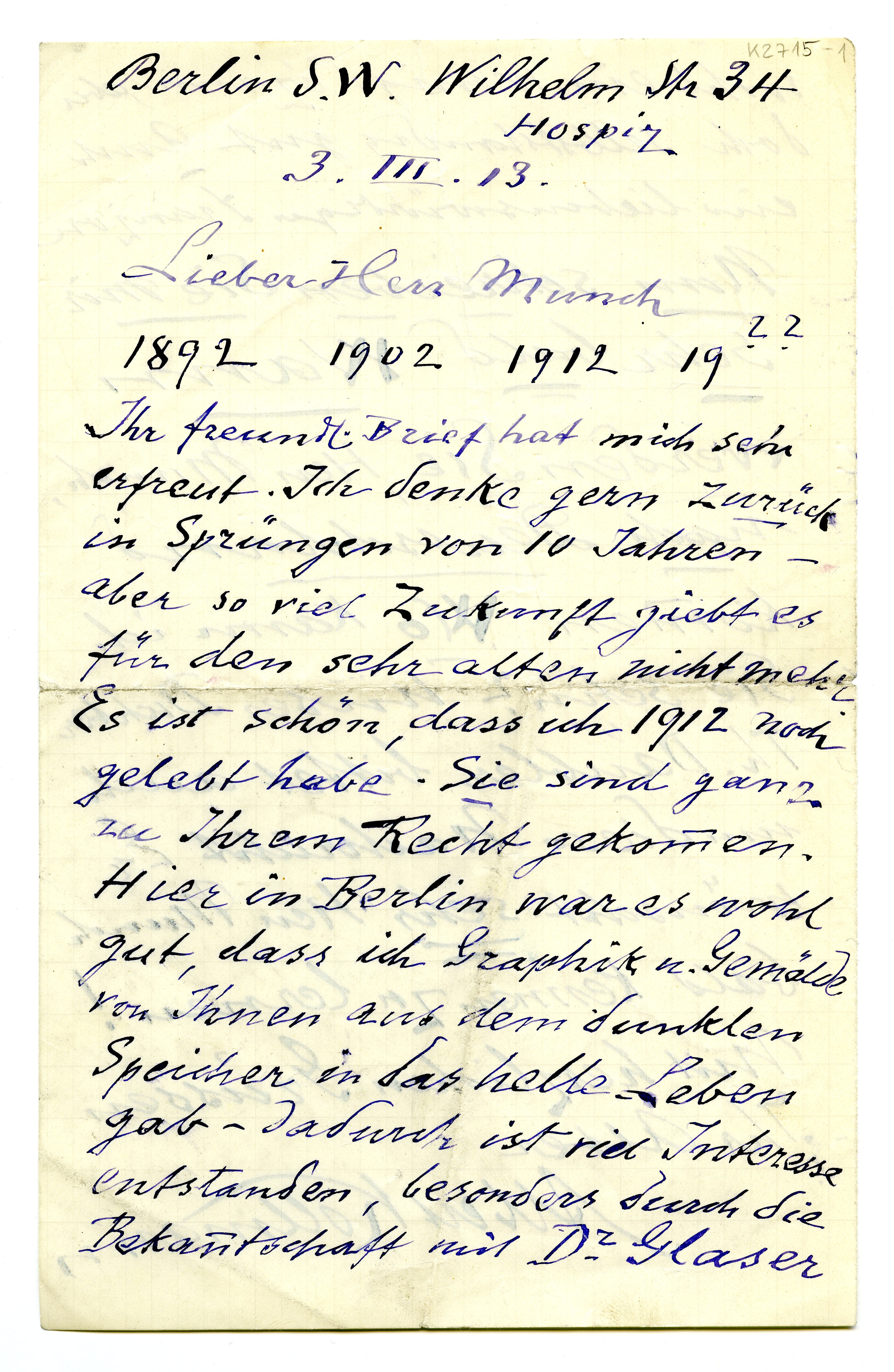 MM K 2715, Munchmuseet. Datert 03.03.1913. Brev fra Albert Kollmann.