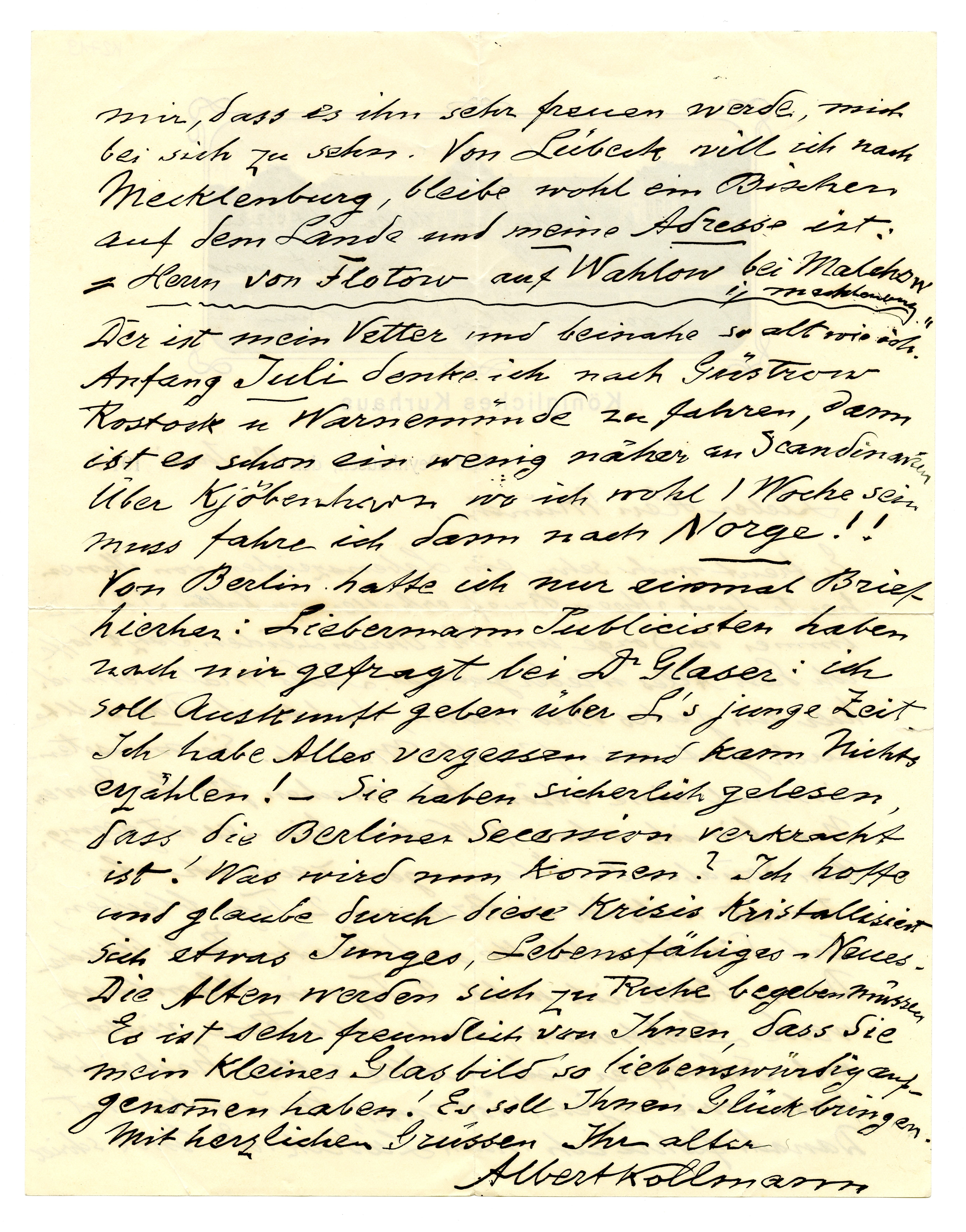 MM K 2719, Munchmuseet. Datert 12.06.1913. Brev fra Albert Kollmann.