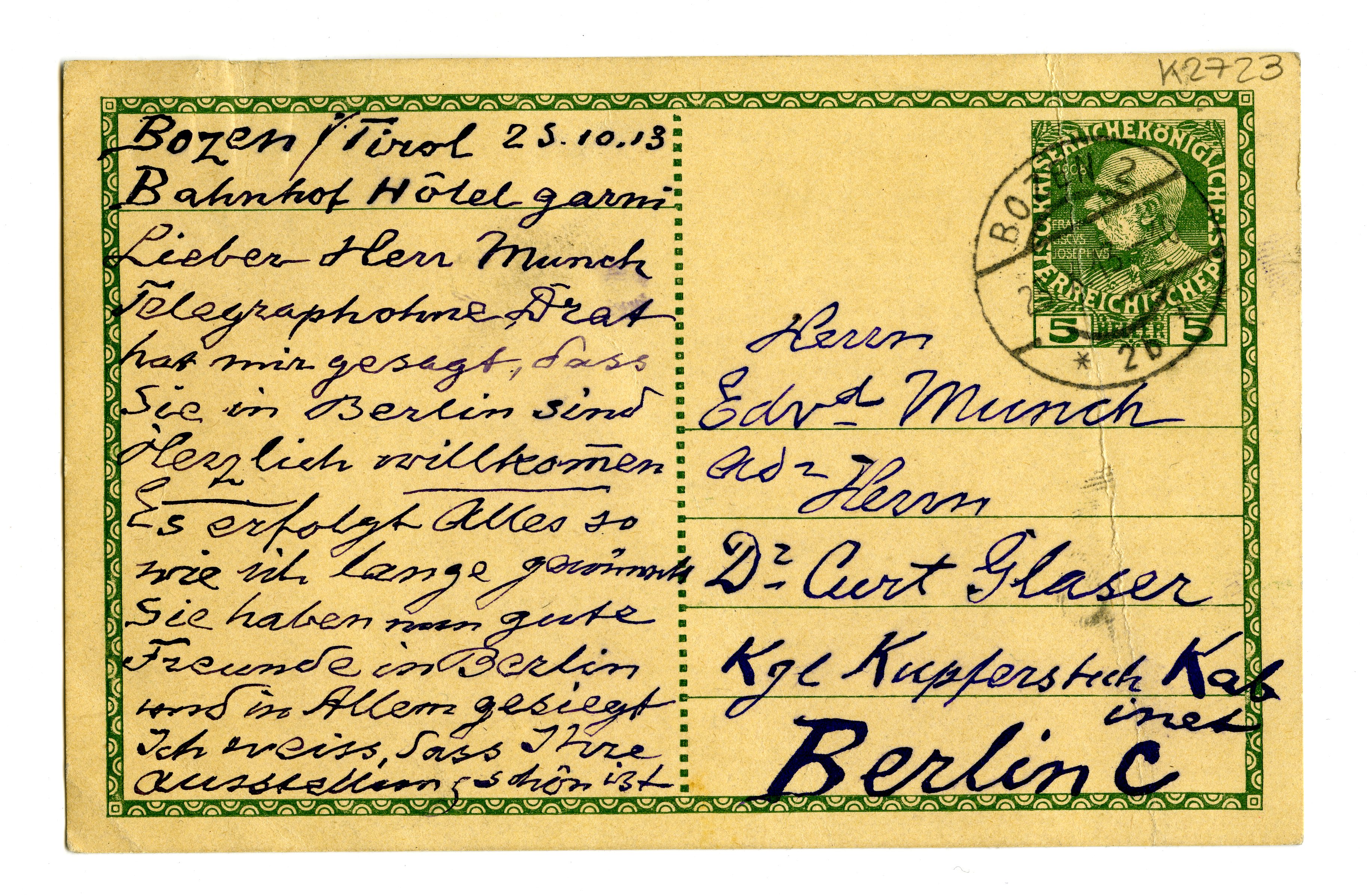MM K 2723, Munchmuseet. Datert 23.10.1913. Brev fra Albert Kollmann.