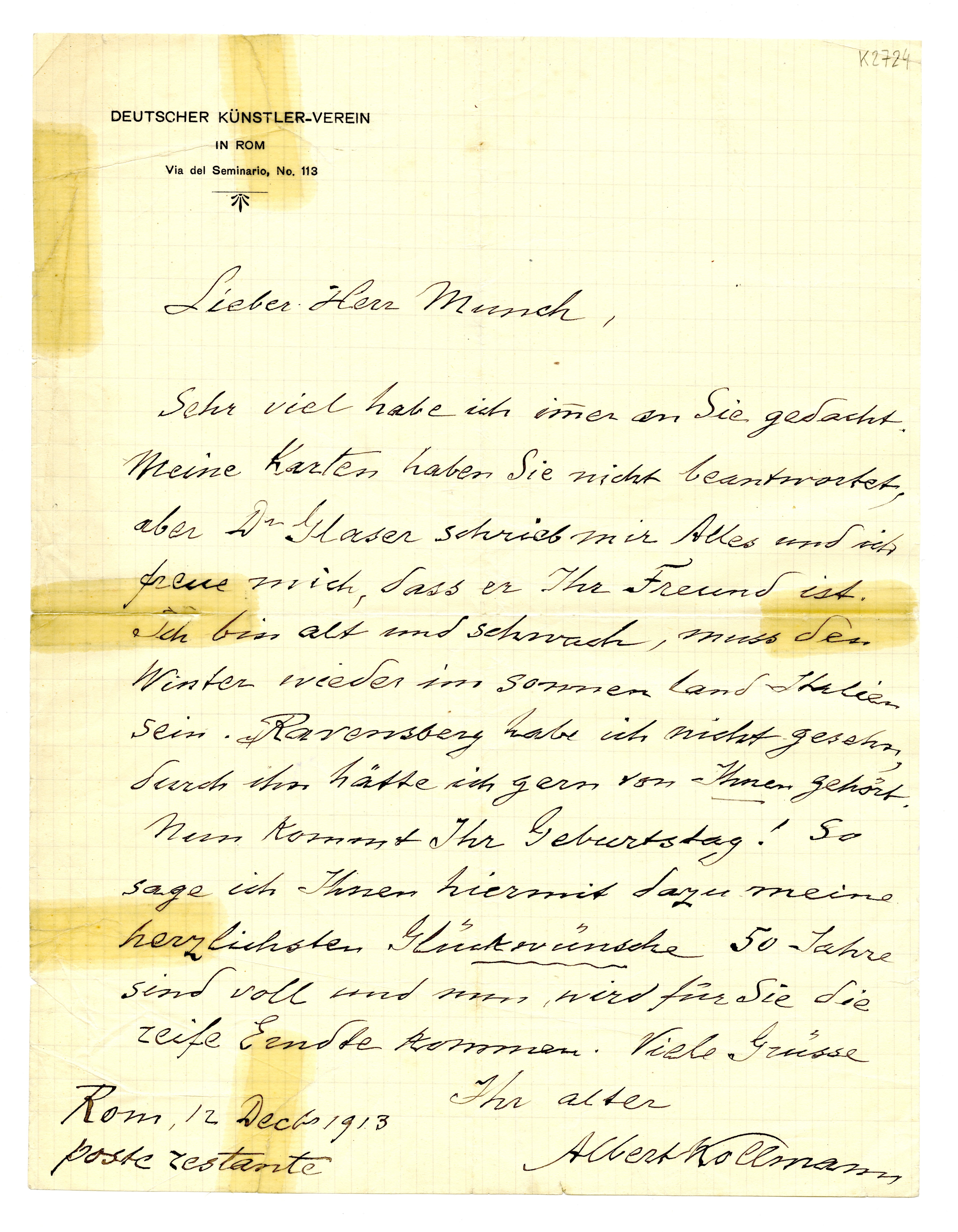 MM K 2724, Munchmuseet. Datert 12.12.1913. Brev fra Albert Kollmann.