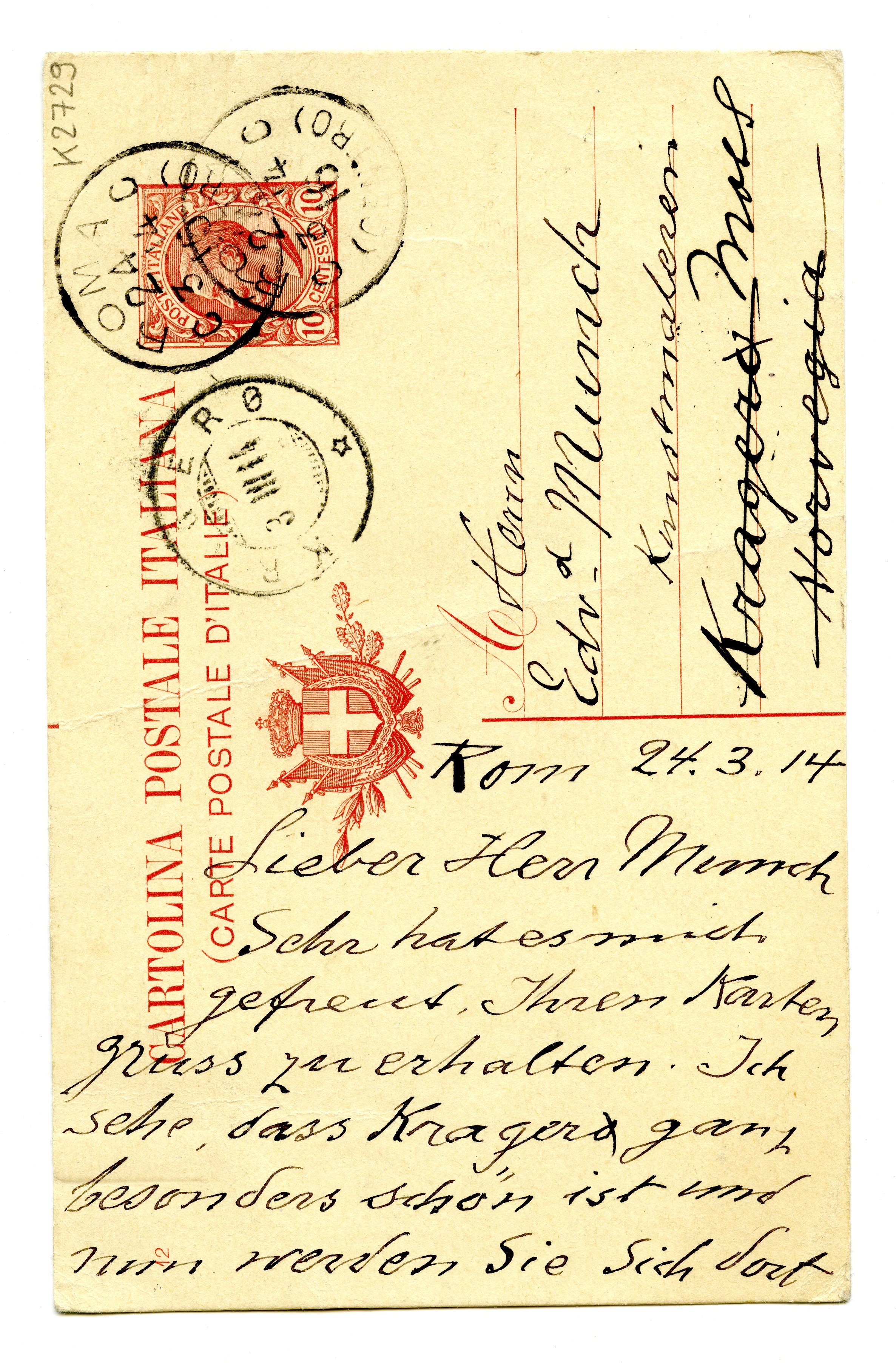 MM K 2729, Munchmuseet. Datert 24.03.1914. Brev fra Albert Kollmann.
