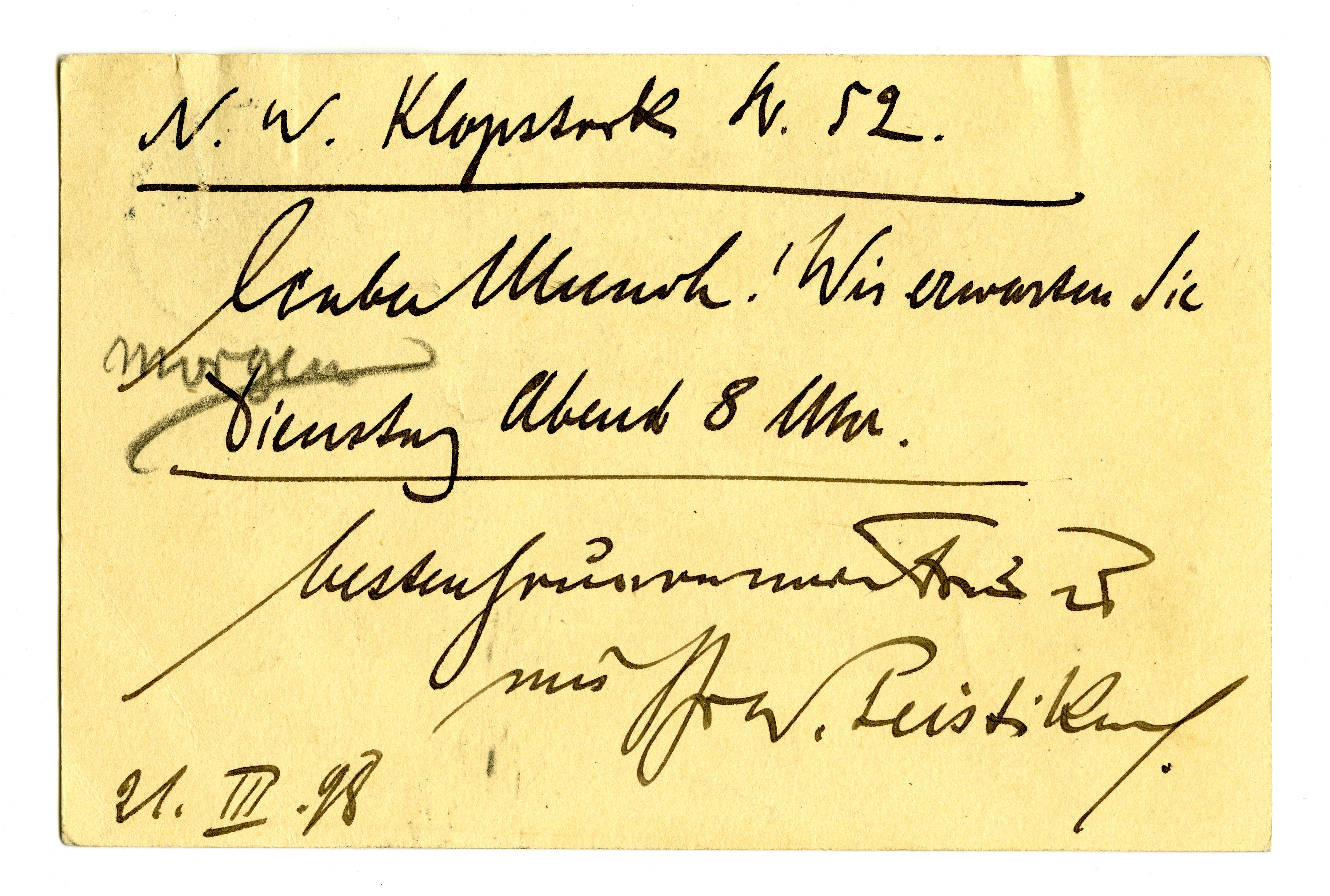 MM K 2746, Munchmuseet. Datert 22.03.1898. Brev fra Walter Leistikow.