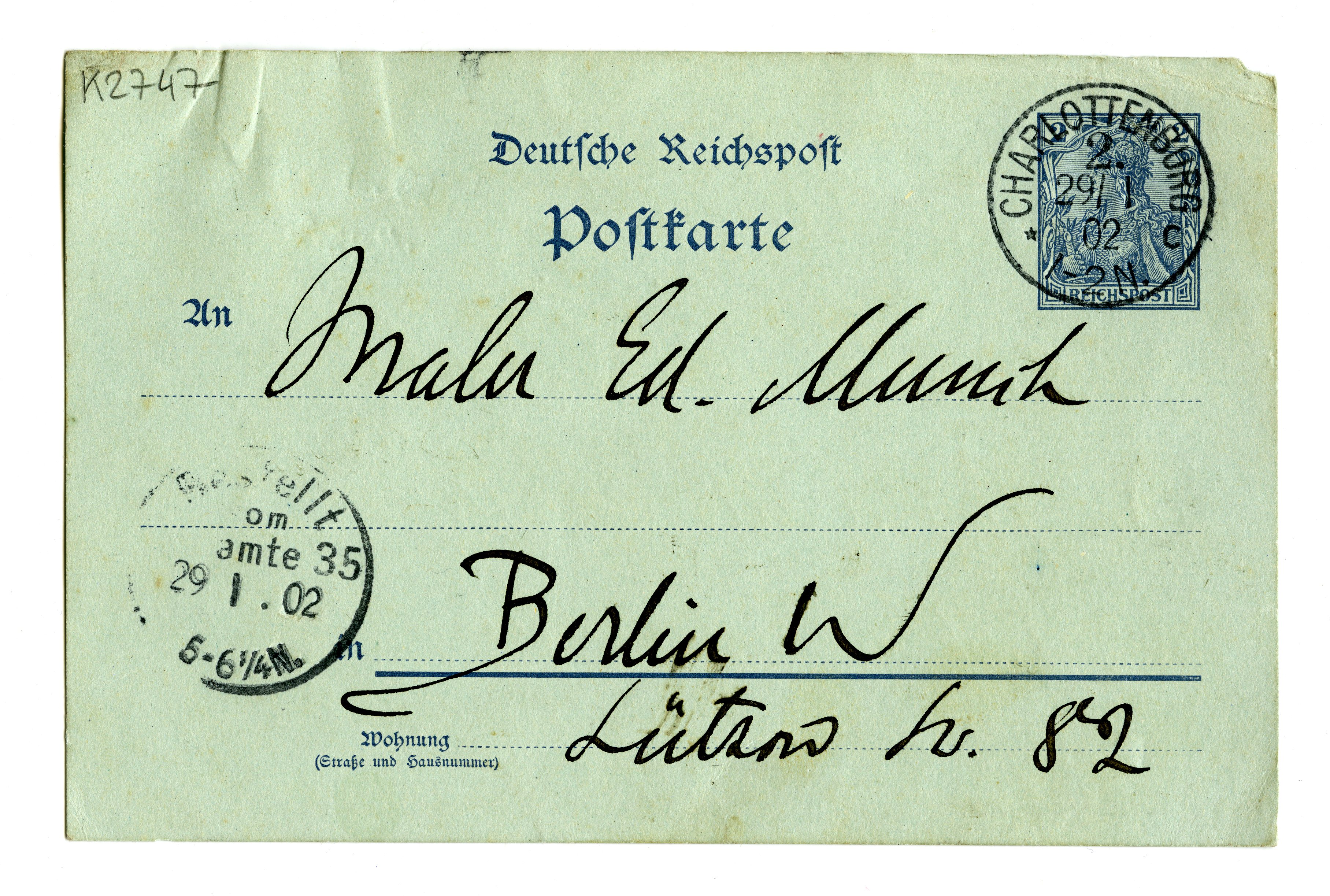 MM K 2747, Munchmuseet. Datert 29.01.1902. Brev fra Walter Leistikow.