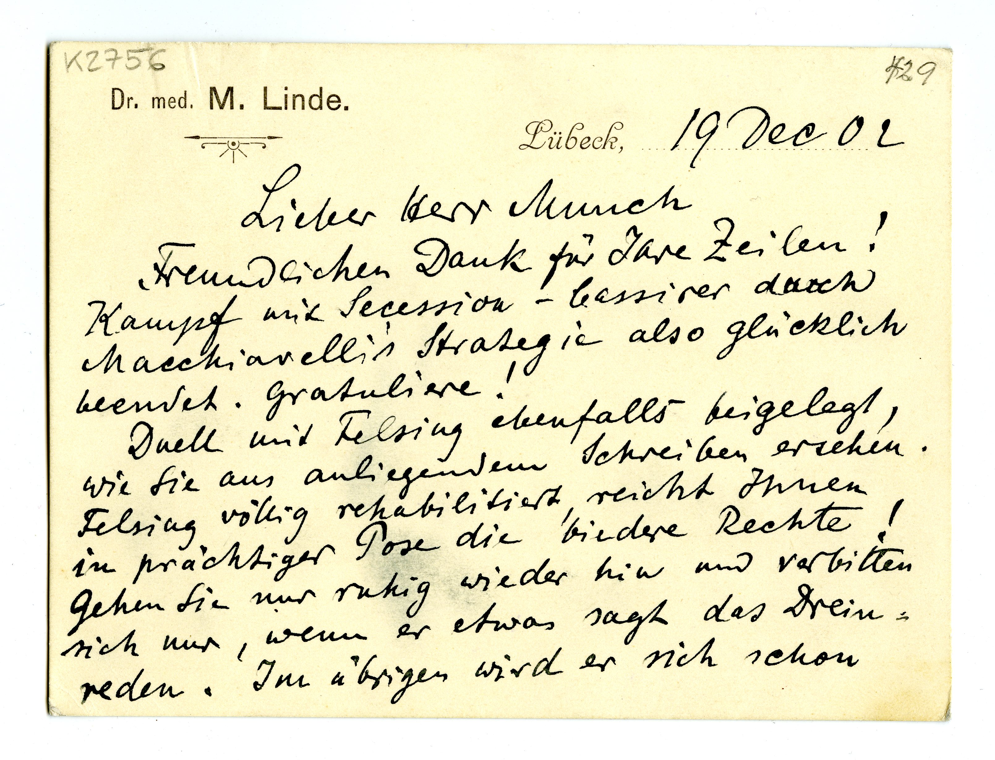 MM K 2756, Munchmuseet. Datert 19.12.1902. Brev fra Max Linde.