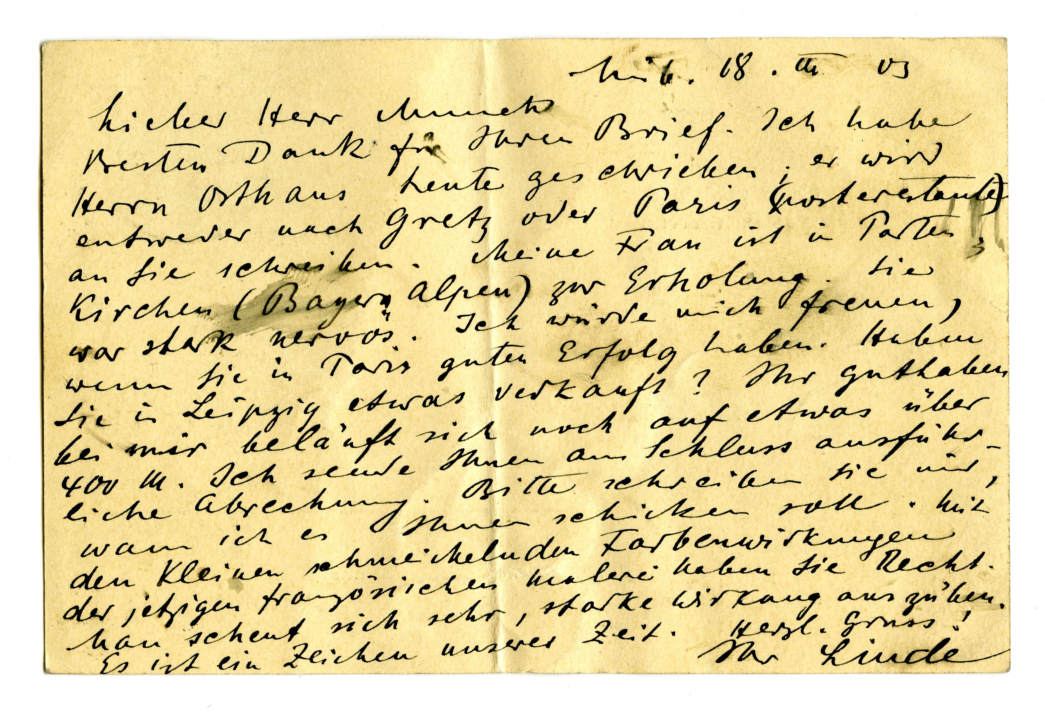 MM K 2764, Munchmuseet. Datert 18.03.1903. Brev fra Max Linde.