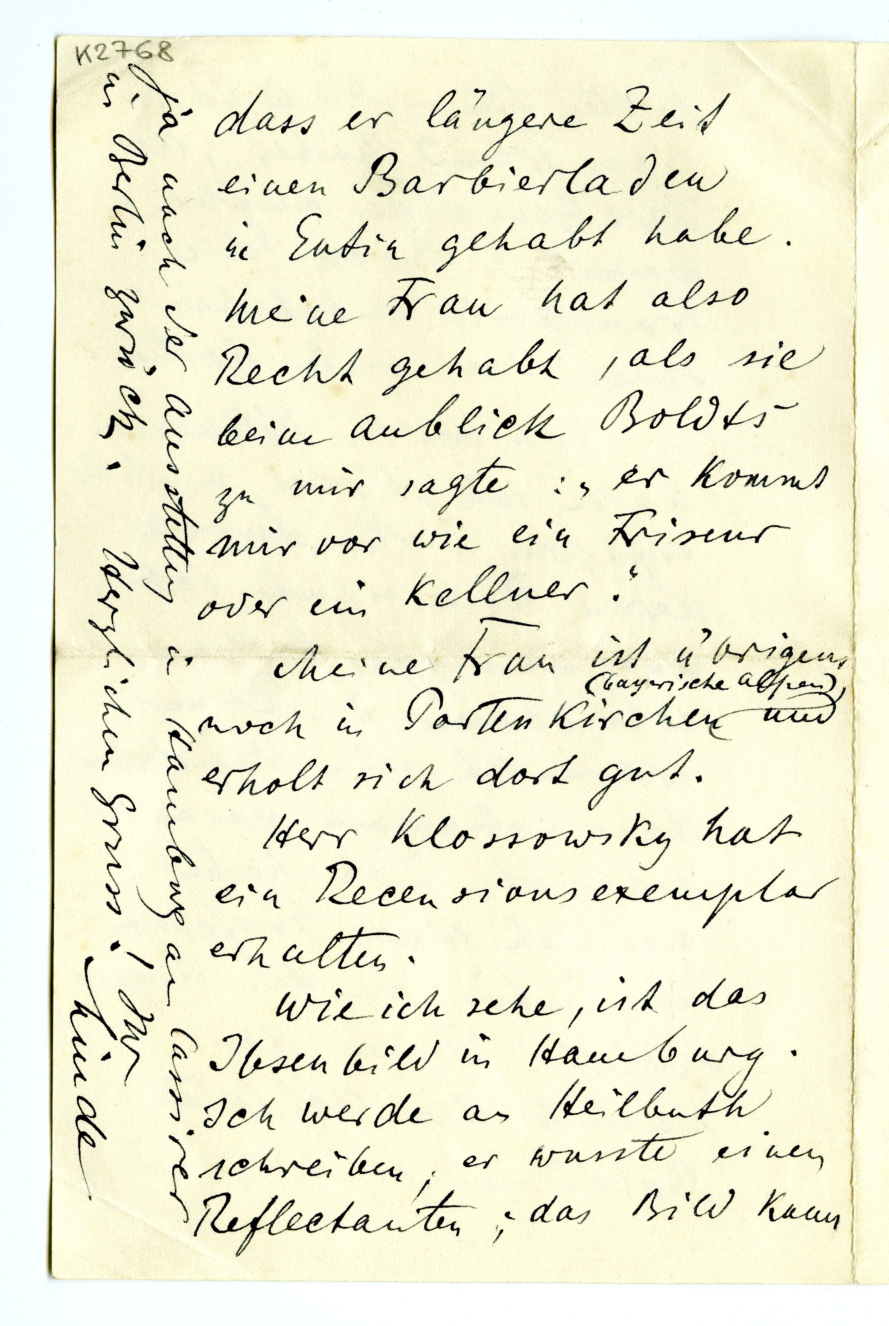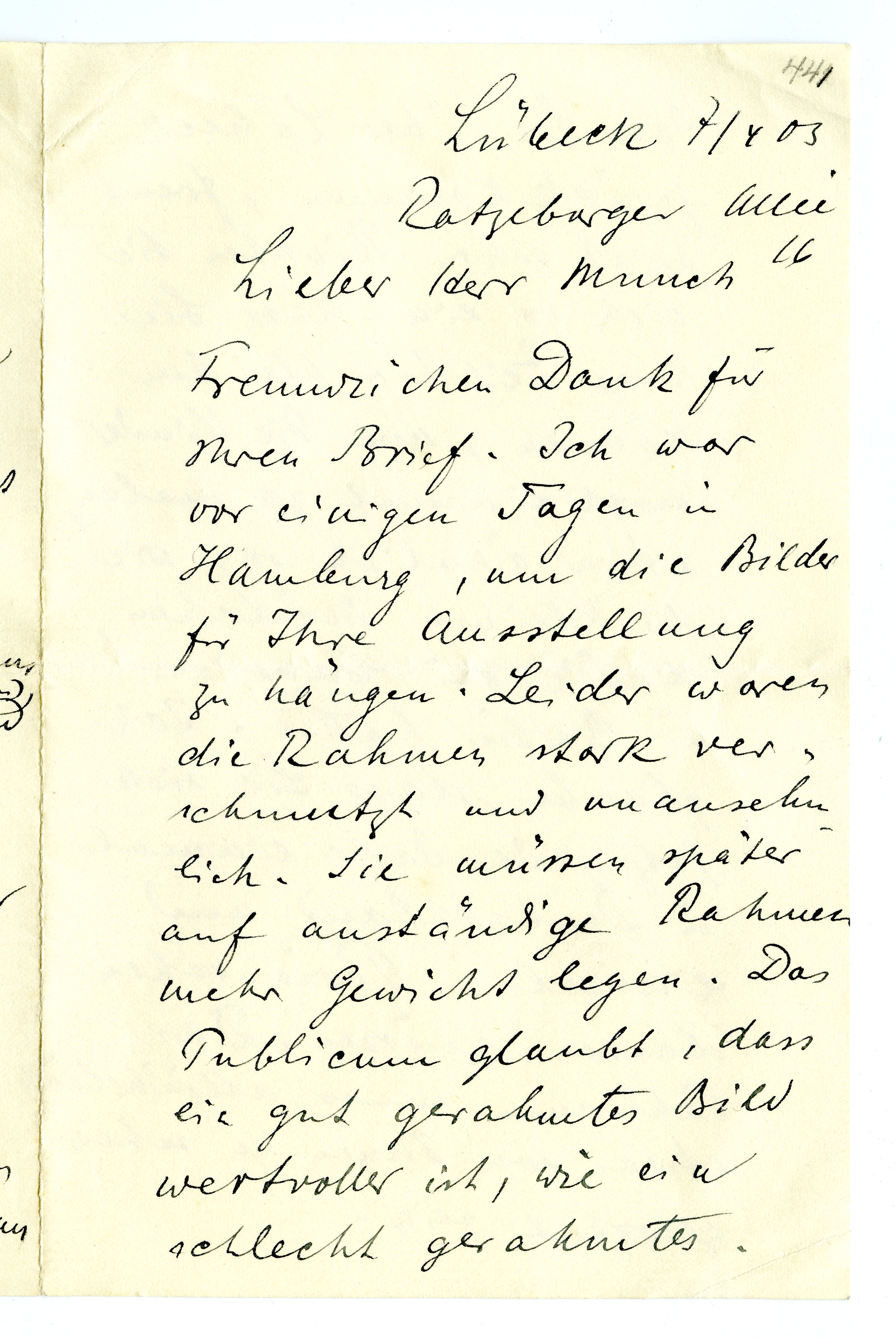 MM K 2768, Munchmuseet. Datert 07.04.1903. Brev fra Max Linde.