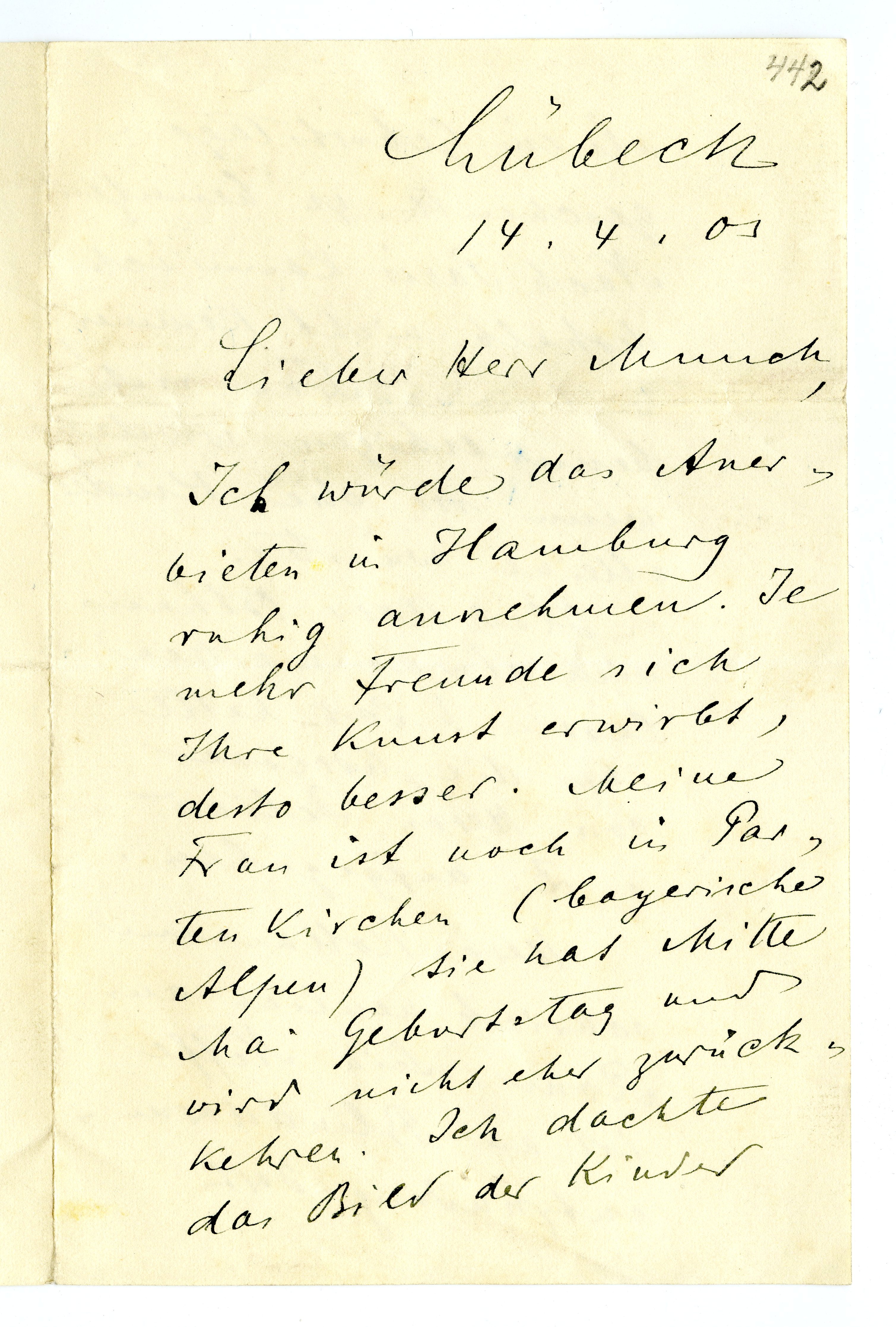 MM K 2769, Munchmuseet. Datert 14.04.1903. Brev fra Max Linde.
