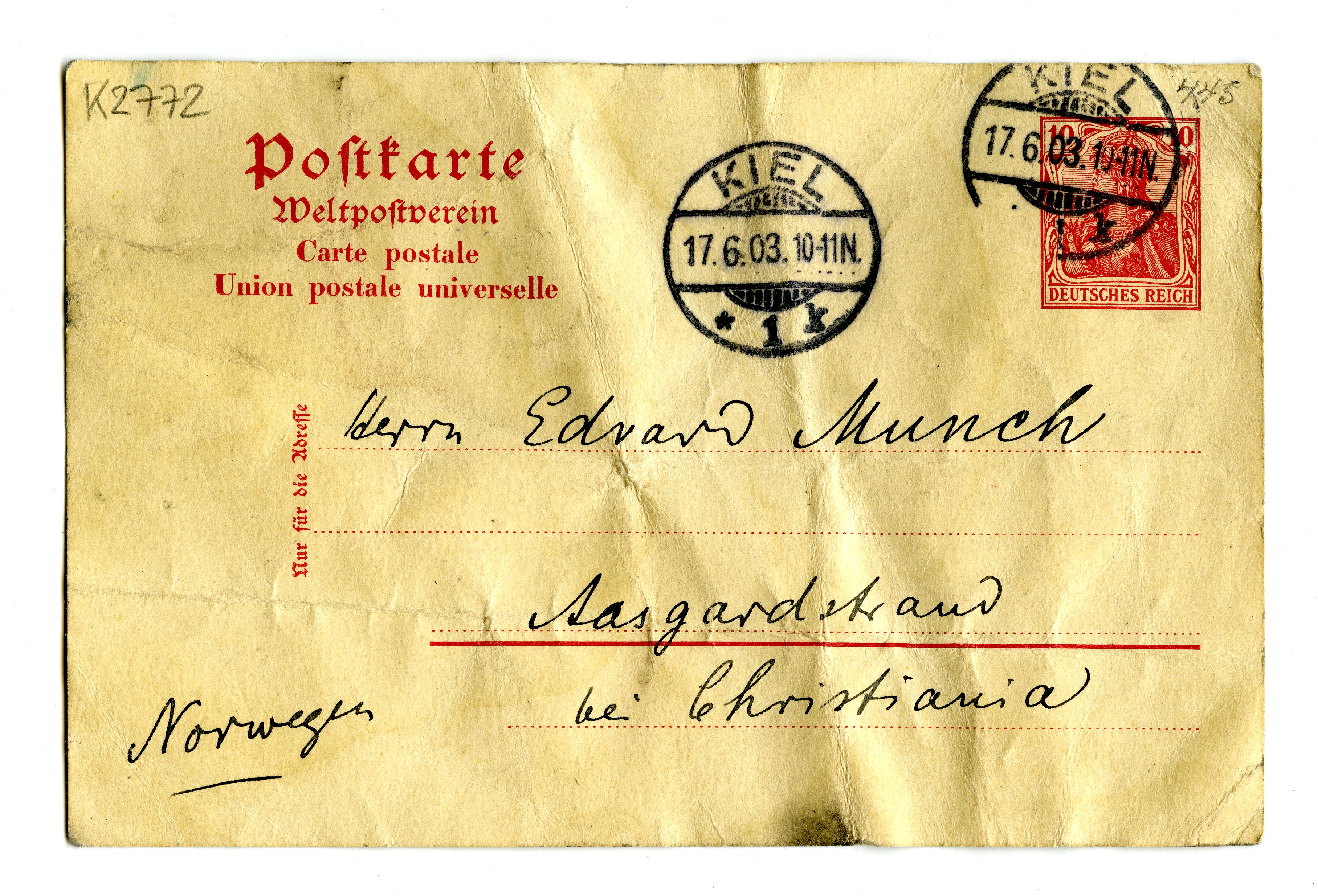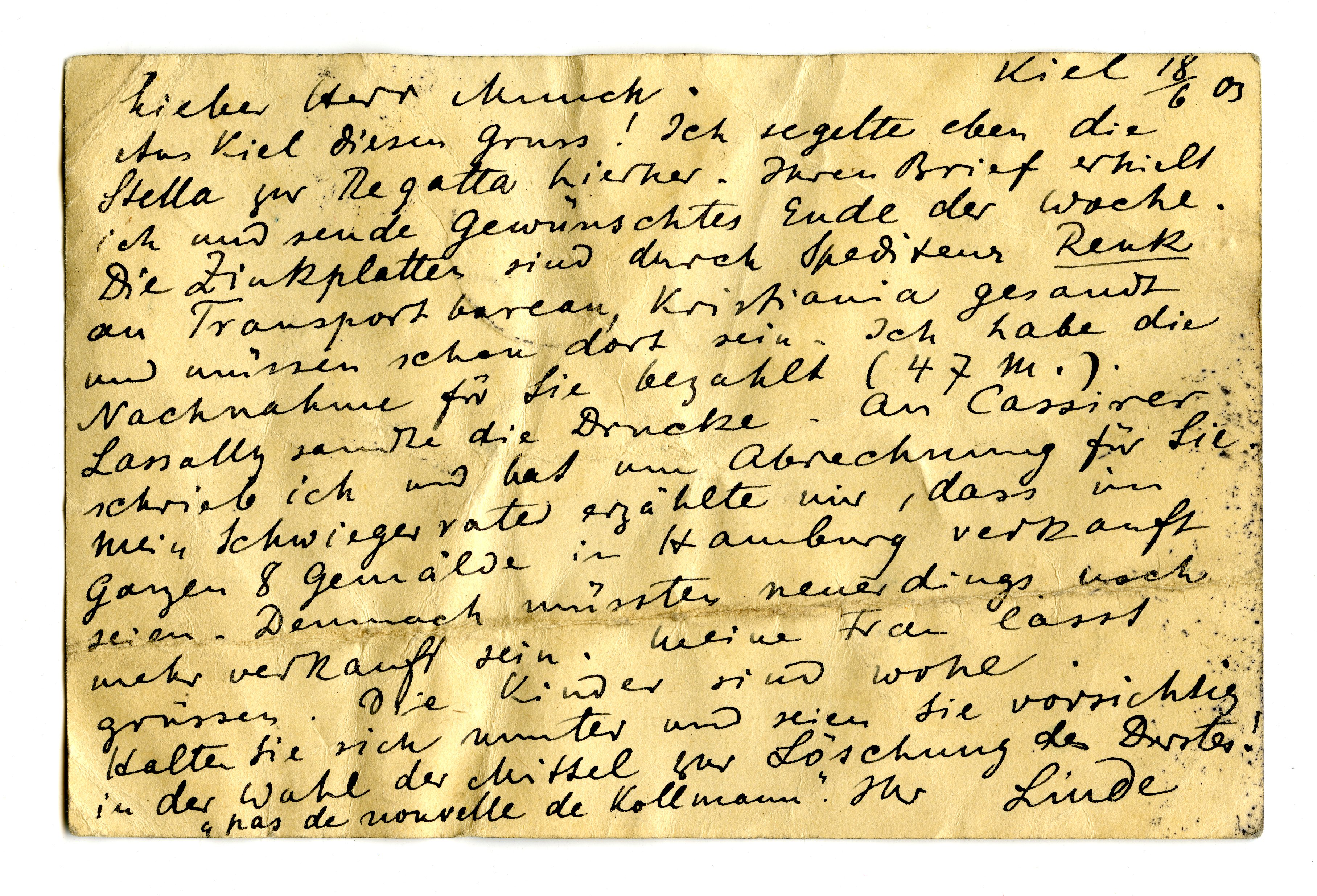 MM K 2772, Munchmuseet. Datert 18.06.1903. Brev fra Max Linde.