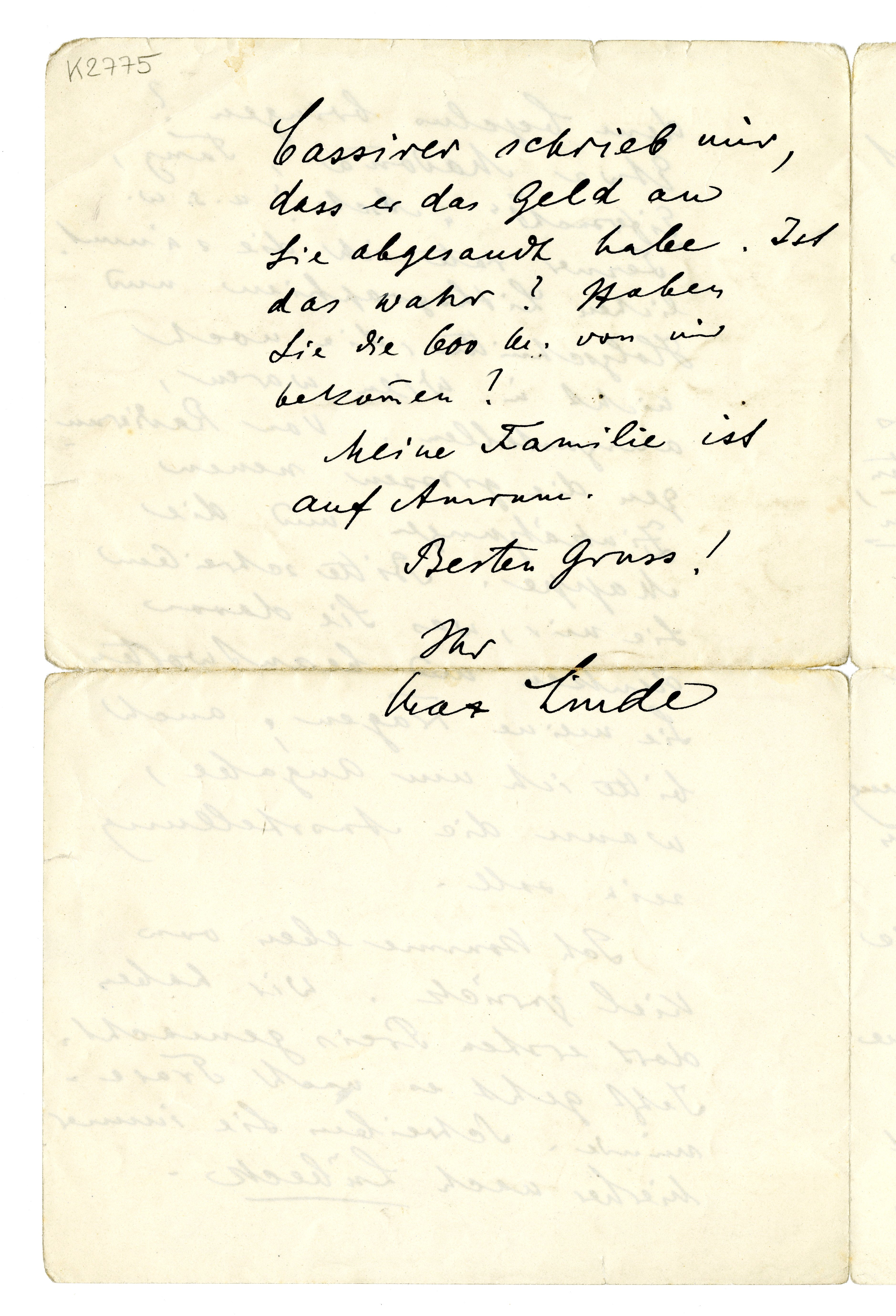MM K 2775, Munchmuseet. Datert 30.06.1903. Brev fra Max Linde.