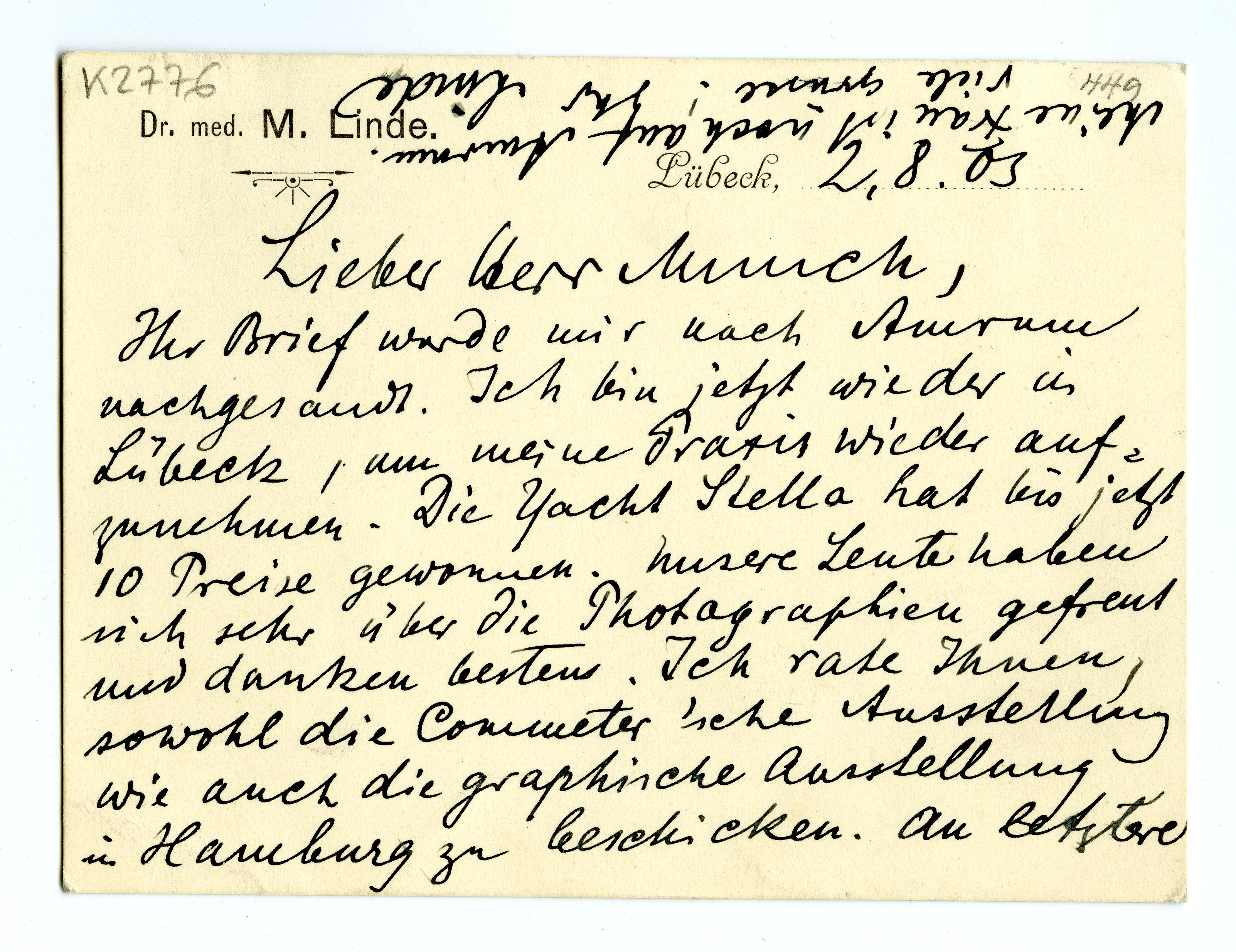 MM K 2776, Munchmuseet. Datert 02.08.1903. Brev fra Max Linde.
