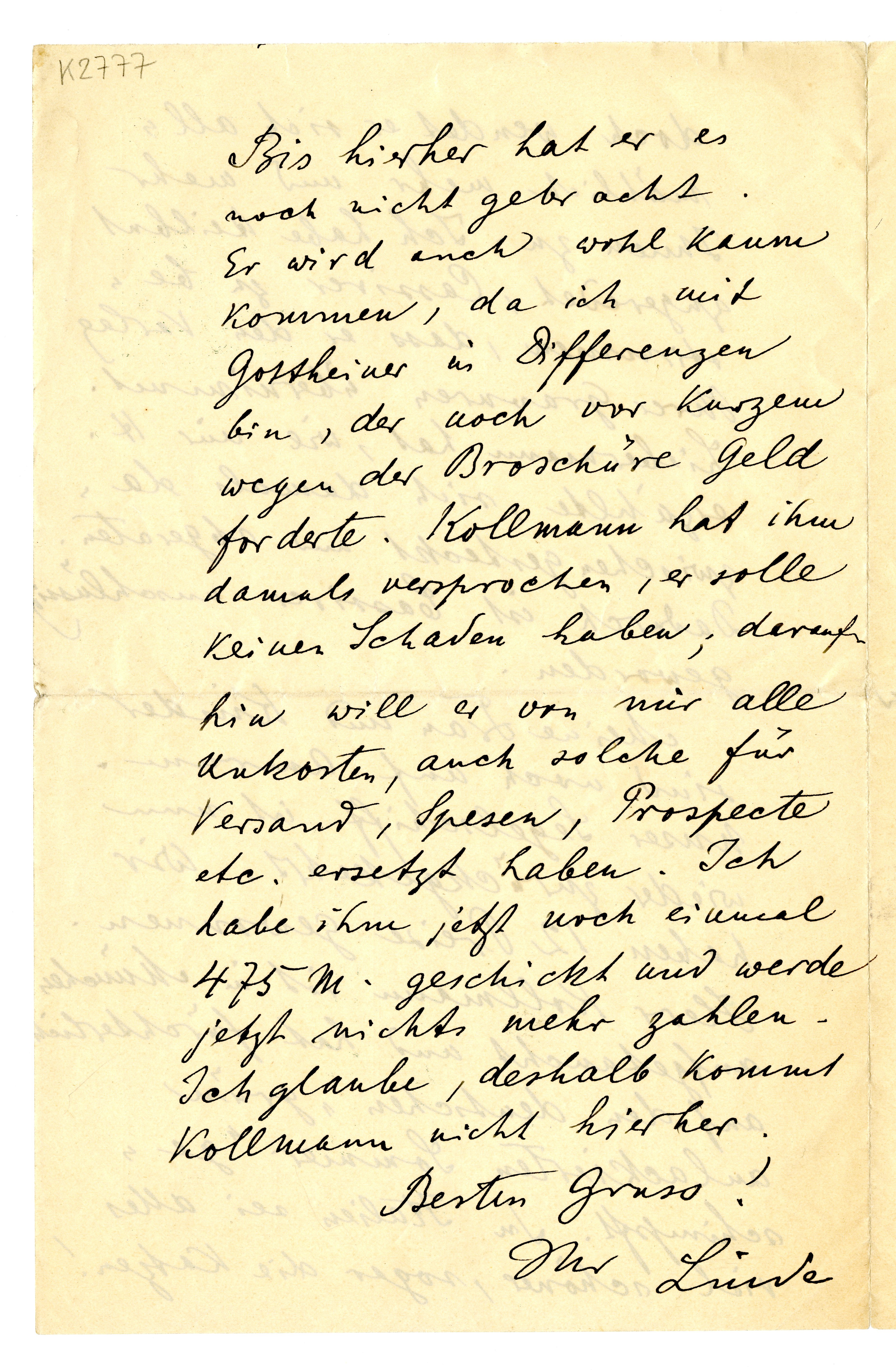 MM K 2777, Munchmuseet. Datert 20.08.1903. Brev fra Max Linde.