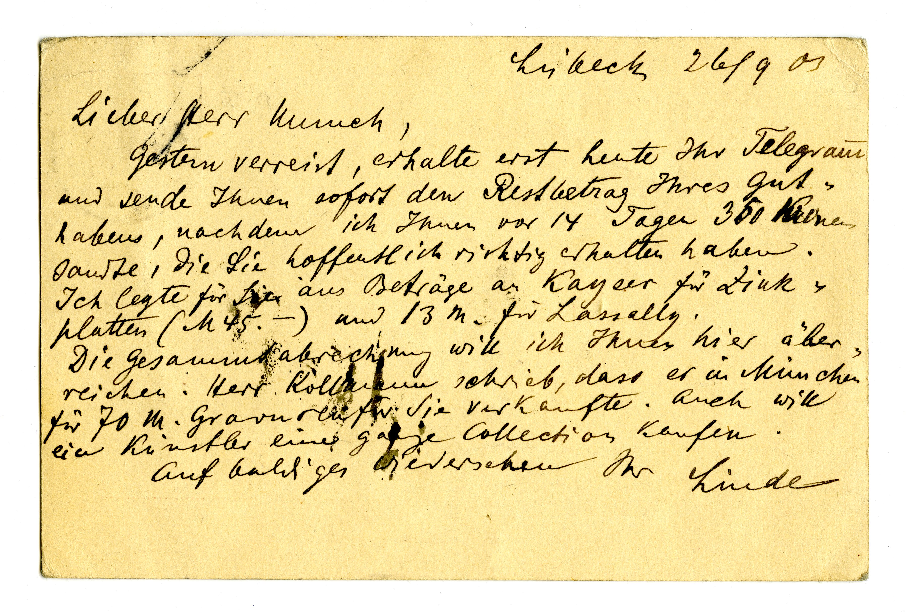 MM K 2778, Munchmuseet. Datert 26.09.1903. Brev fra Max Linde.