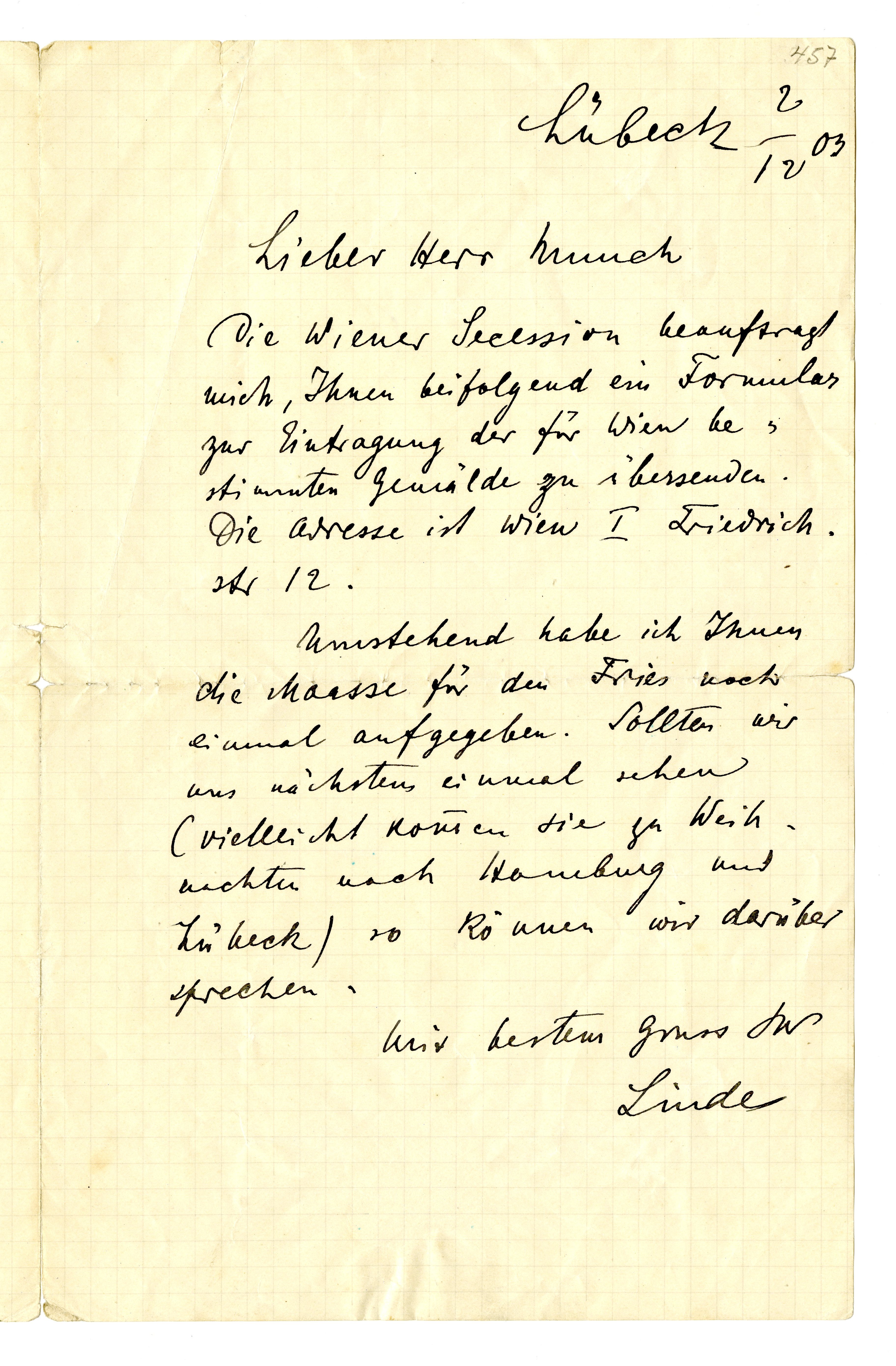 MM K 2784, Munchmuseet. Datert 02.12.1903. Brev fra Max Linde.