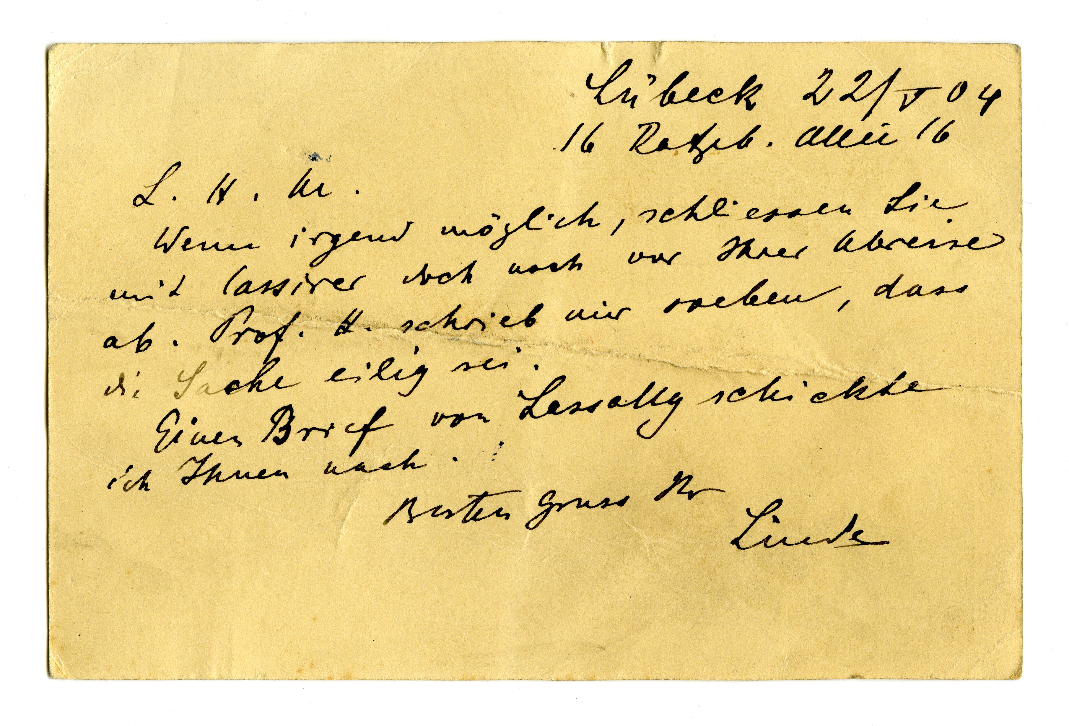 MM K 2797, Munchmuseet. Datert 22.05.1904. Brev fra Max Linde.