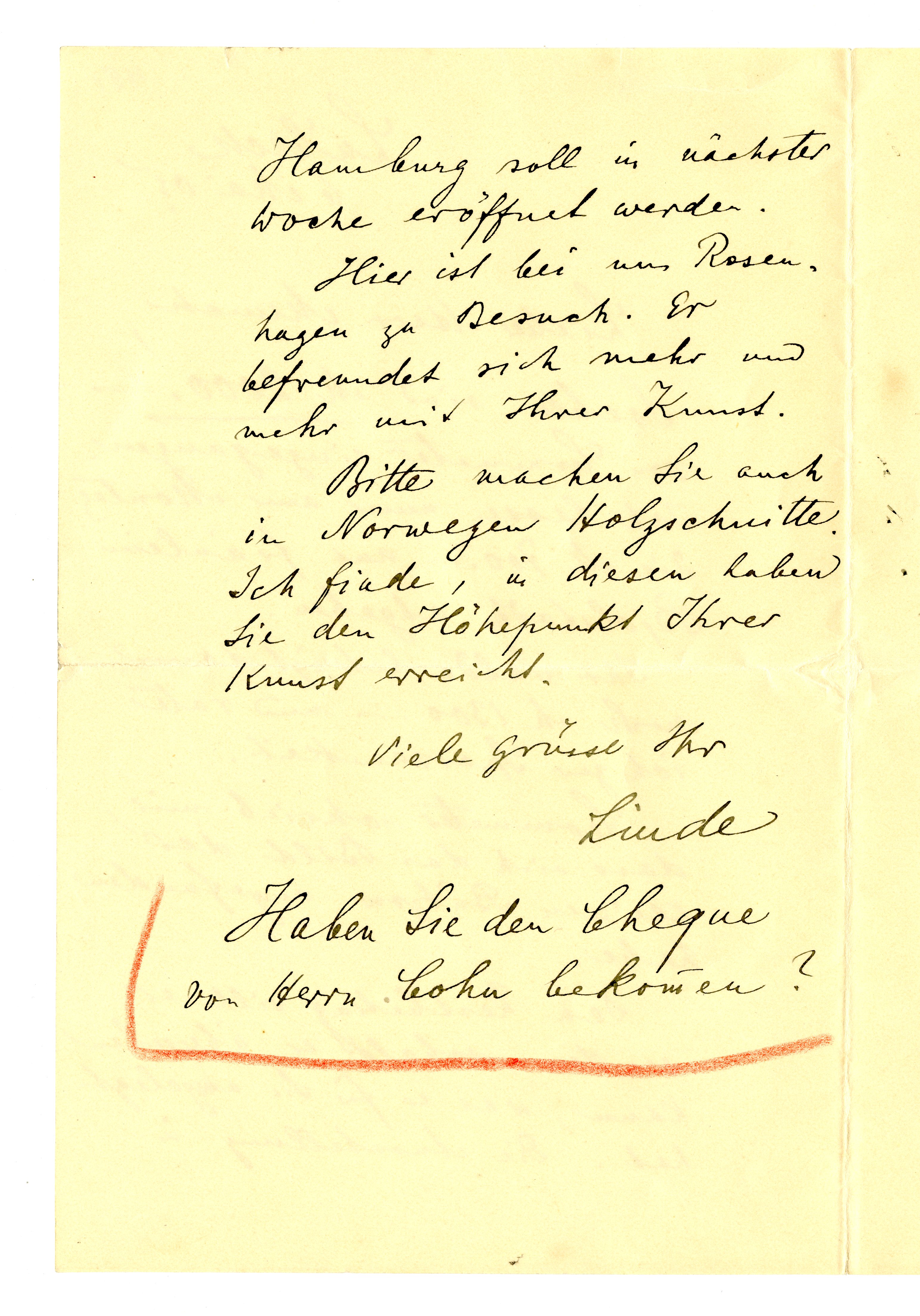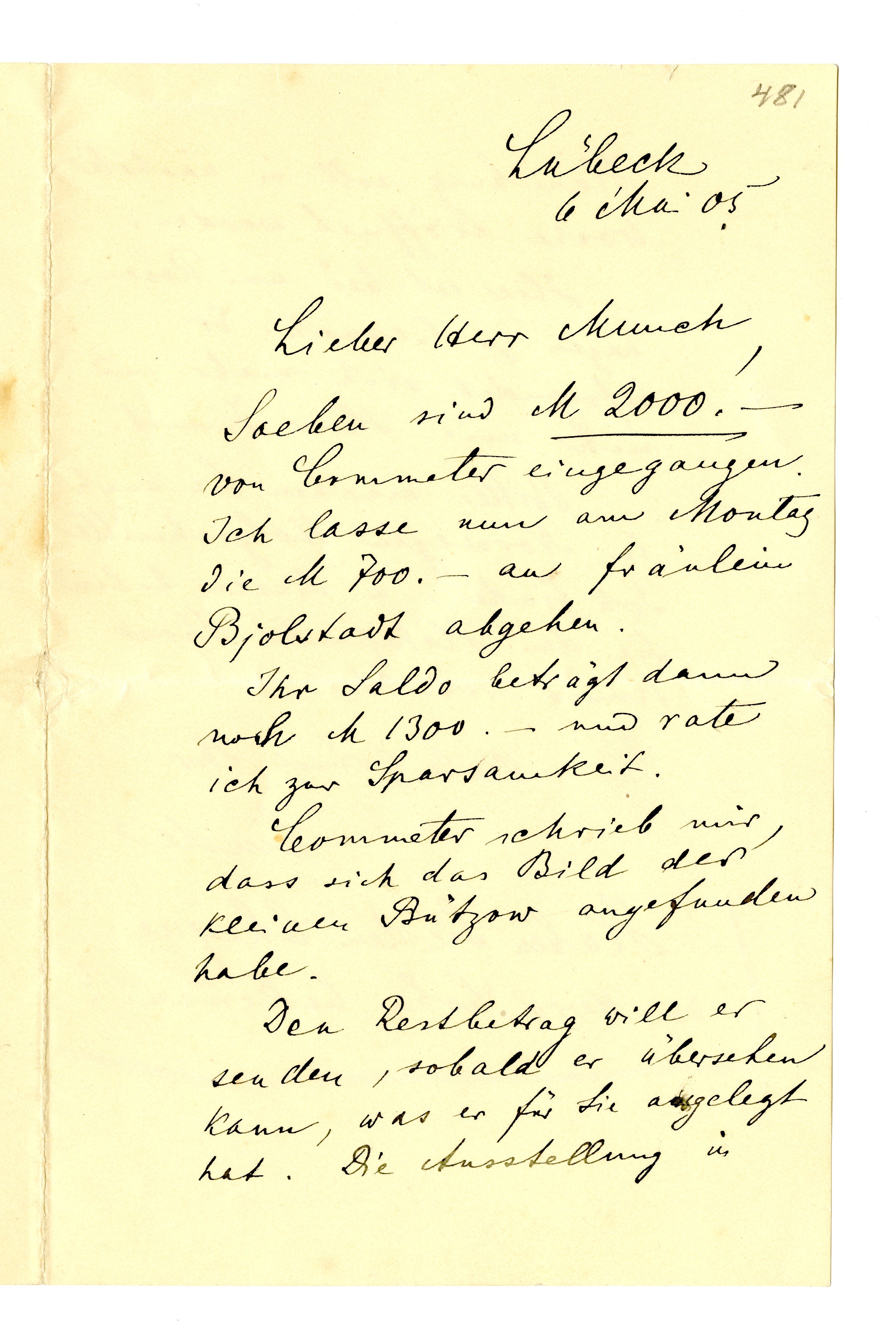 MM K 2808, Munchmuseet. Datert 06.05.1905. Brev fra Max Linde.