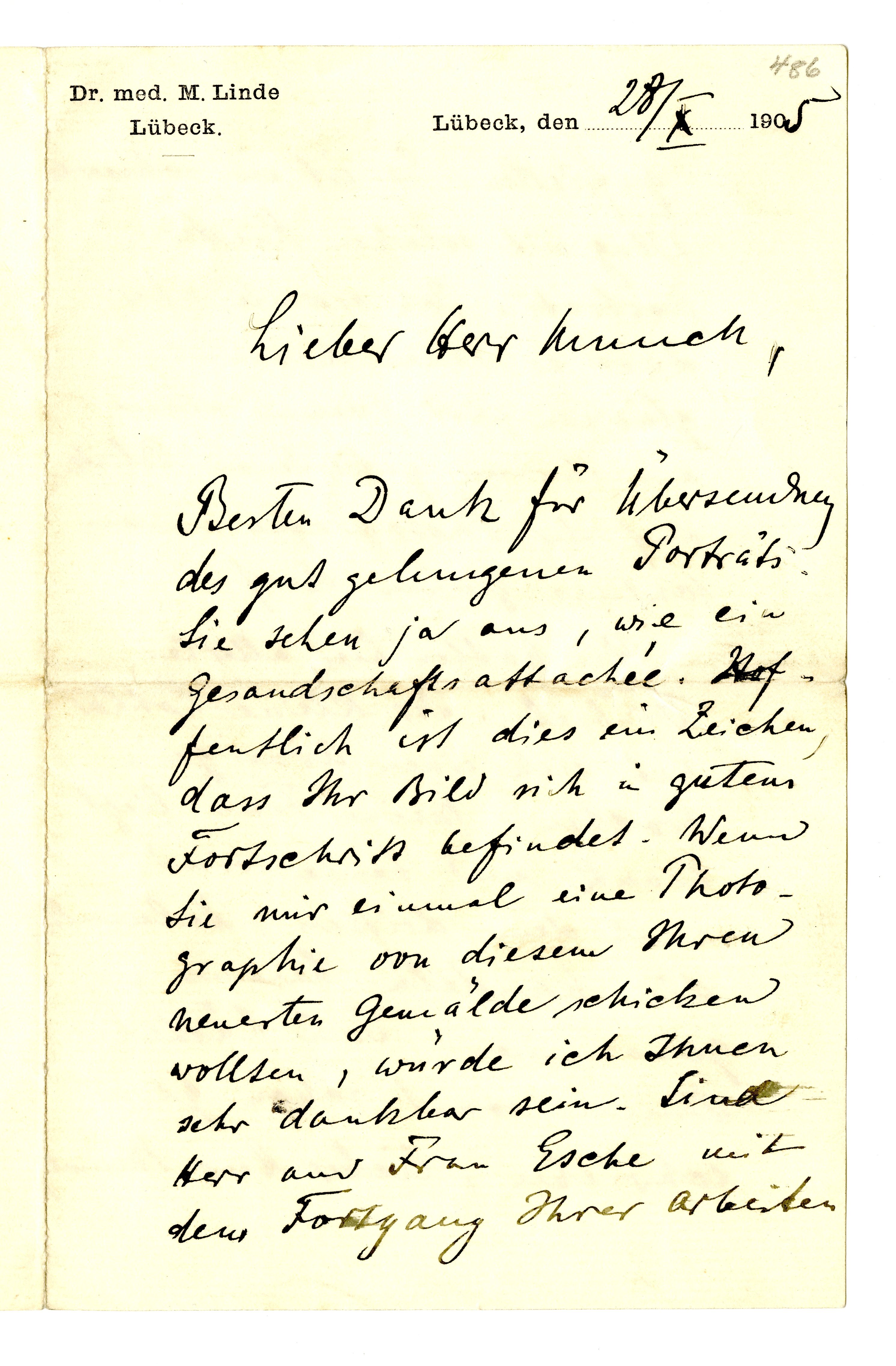 MM K 2813, Munchmuseet. Datert 28.10.1905. Brev fra Max Linde.