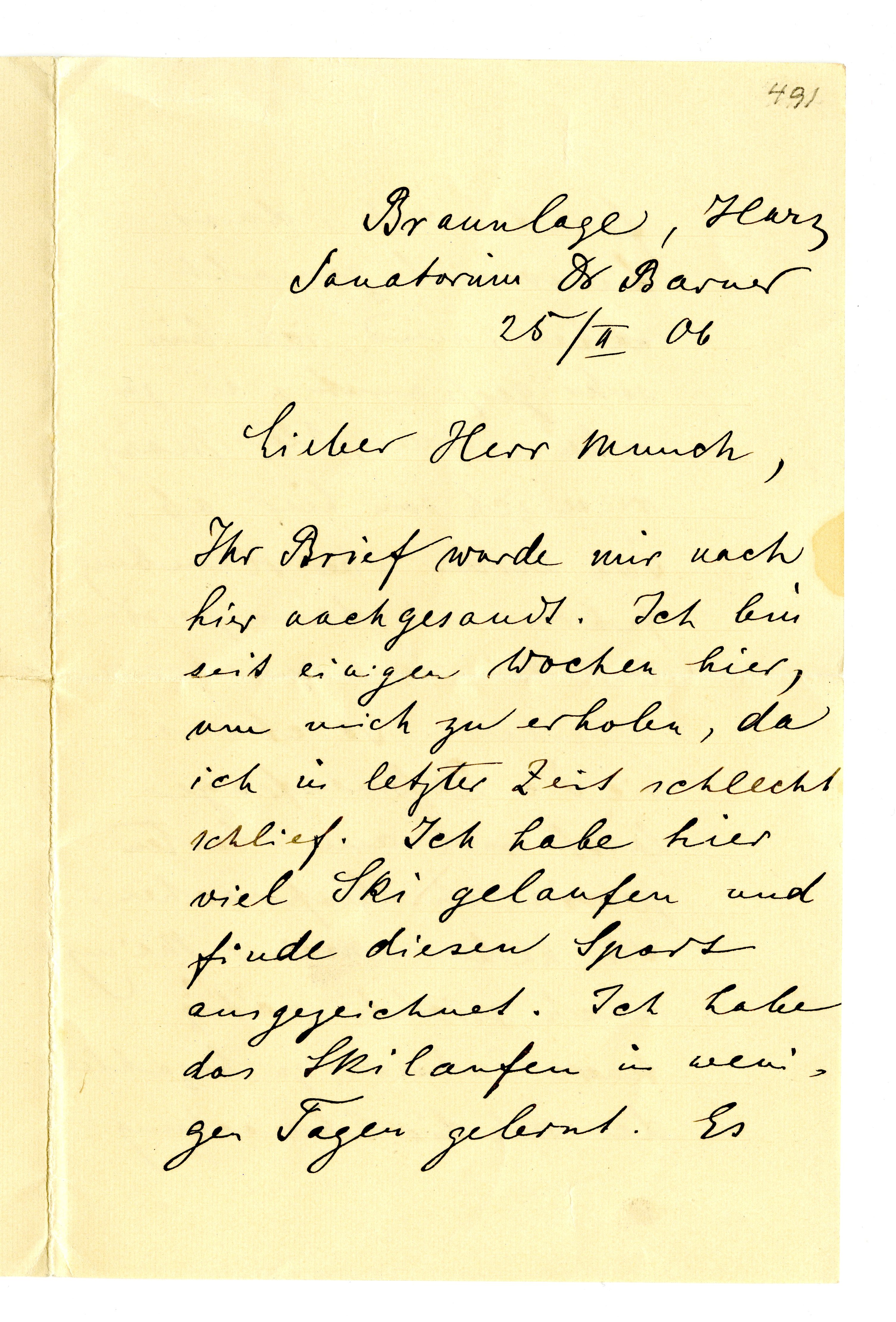 MM K 2818, Munchmuseet. Datert 26.02.1906. Brev fra Max Linde.