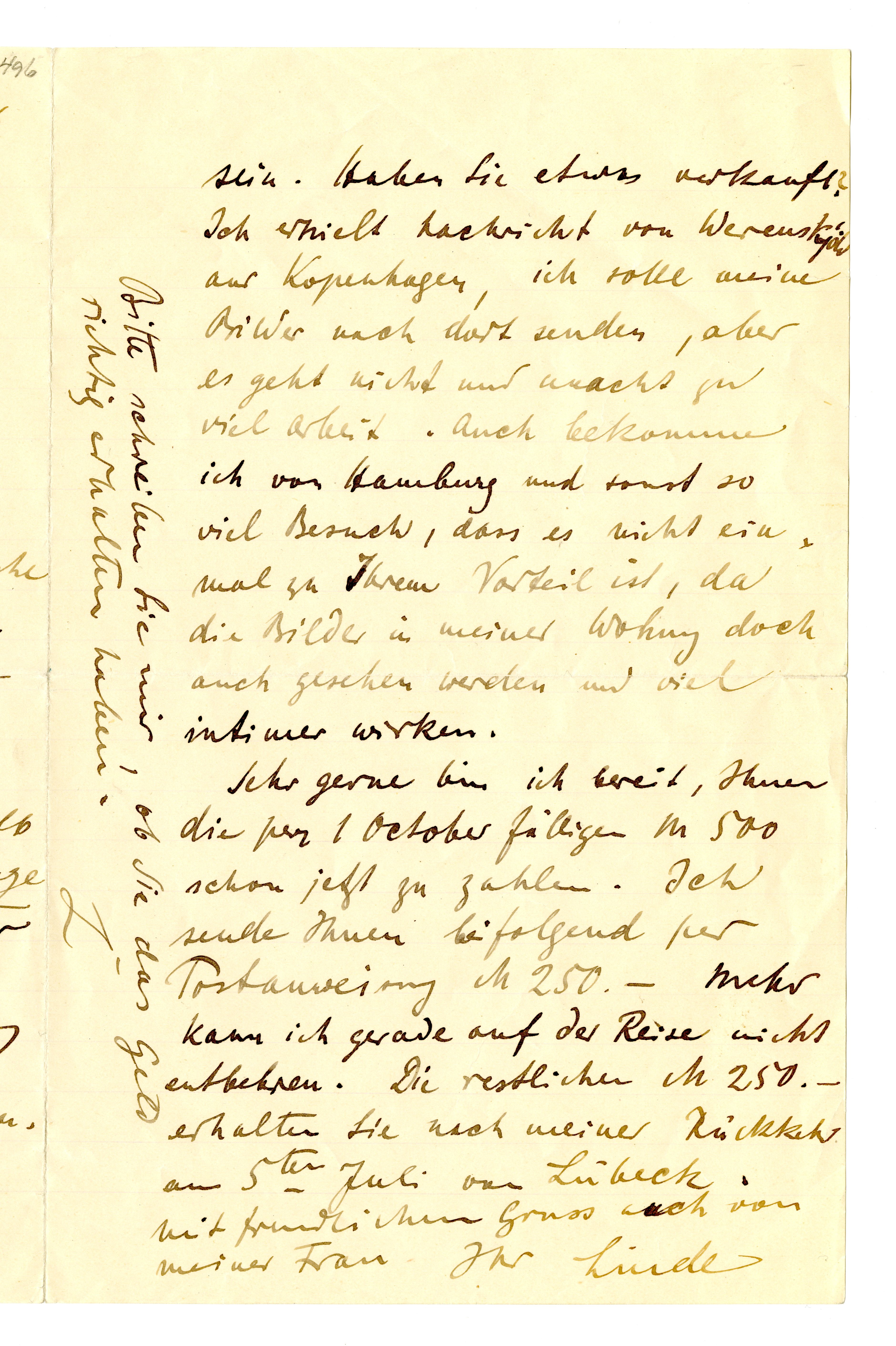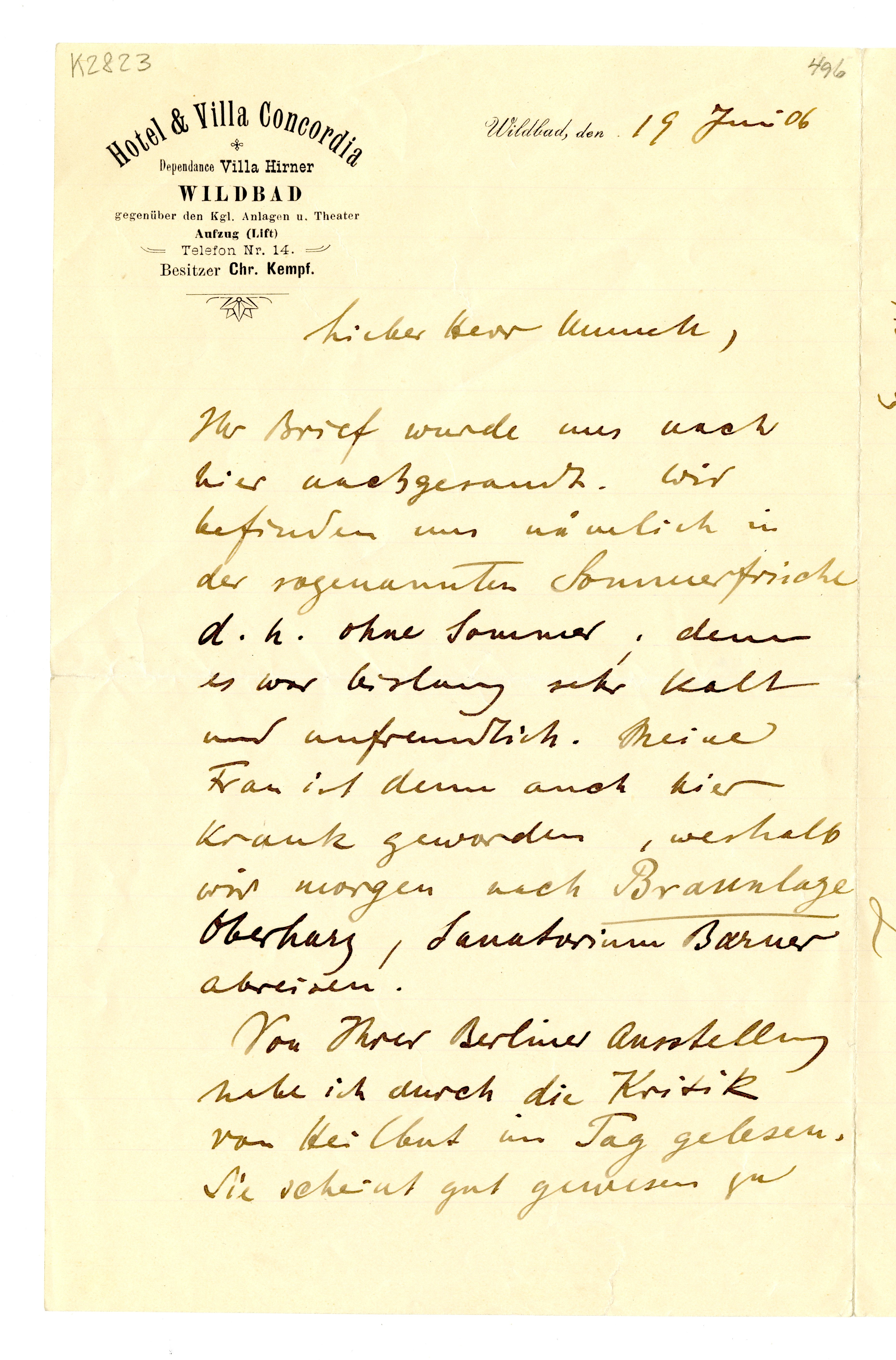 MM K 2823, Munchmuseet. Datert 19.06.1906. Brev fra Max Linde.