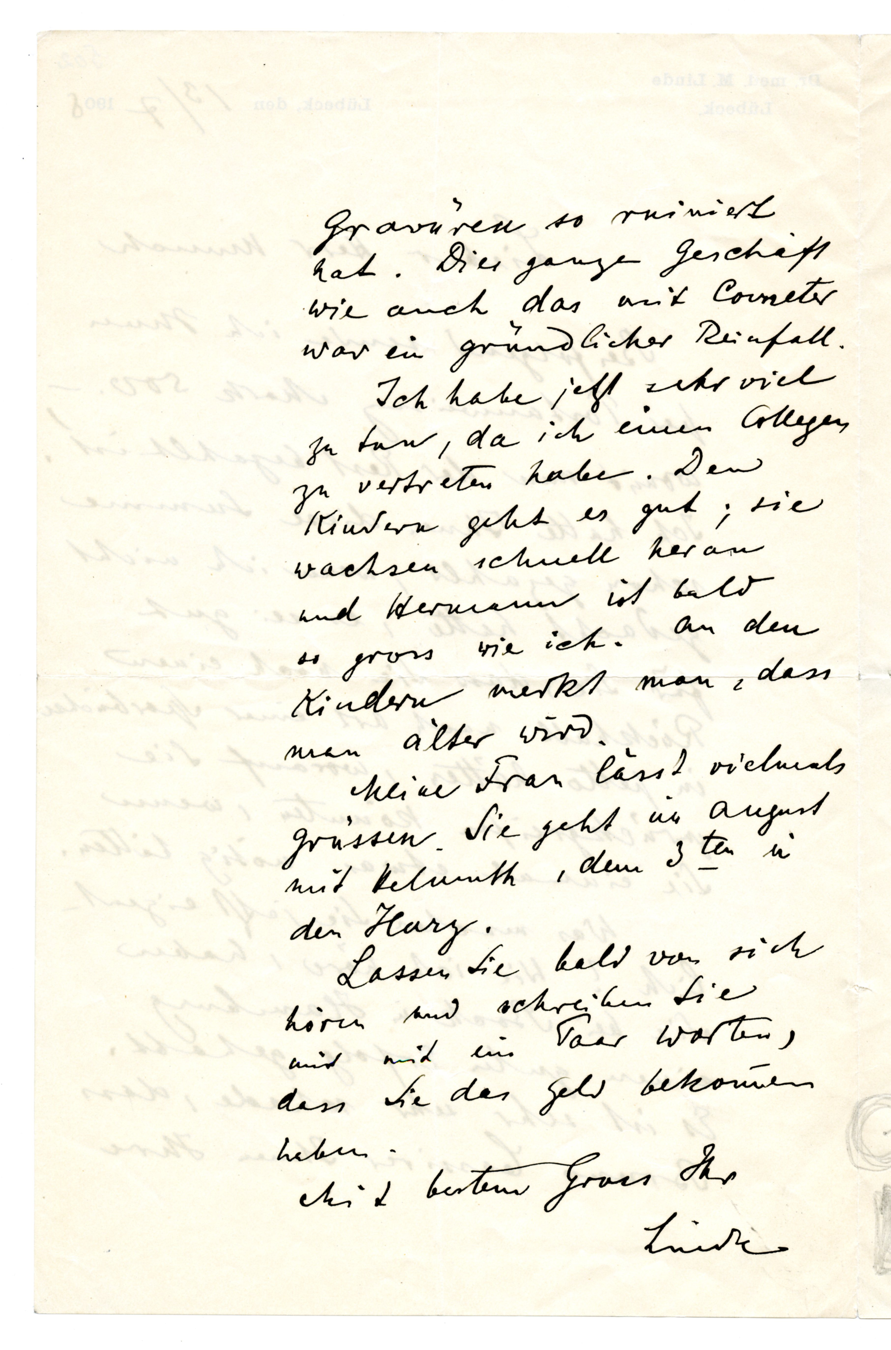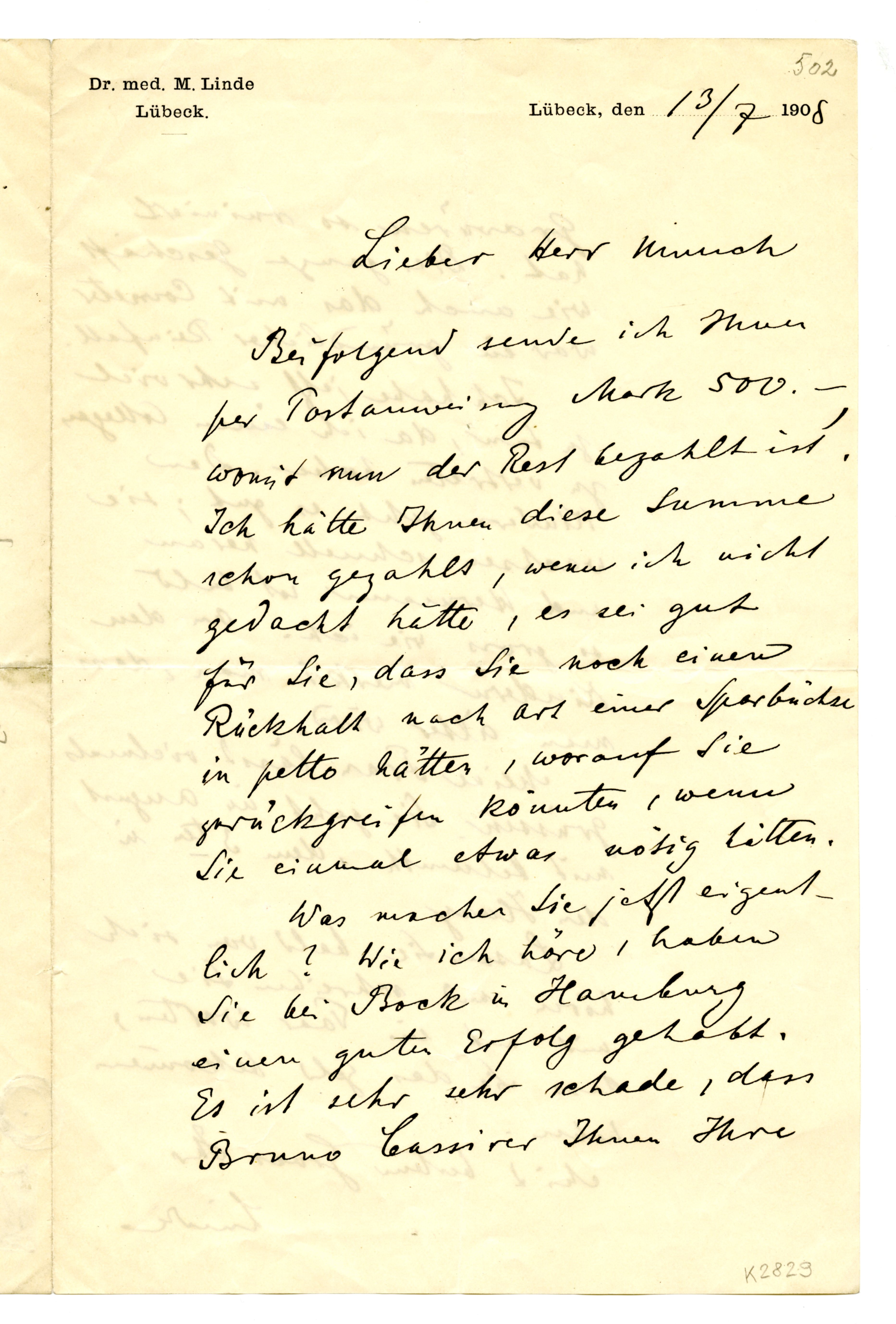 MM K 2829, Munchmuseet. Datert 13.07.1908. Brev fra Max Linde.