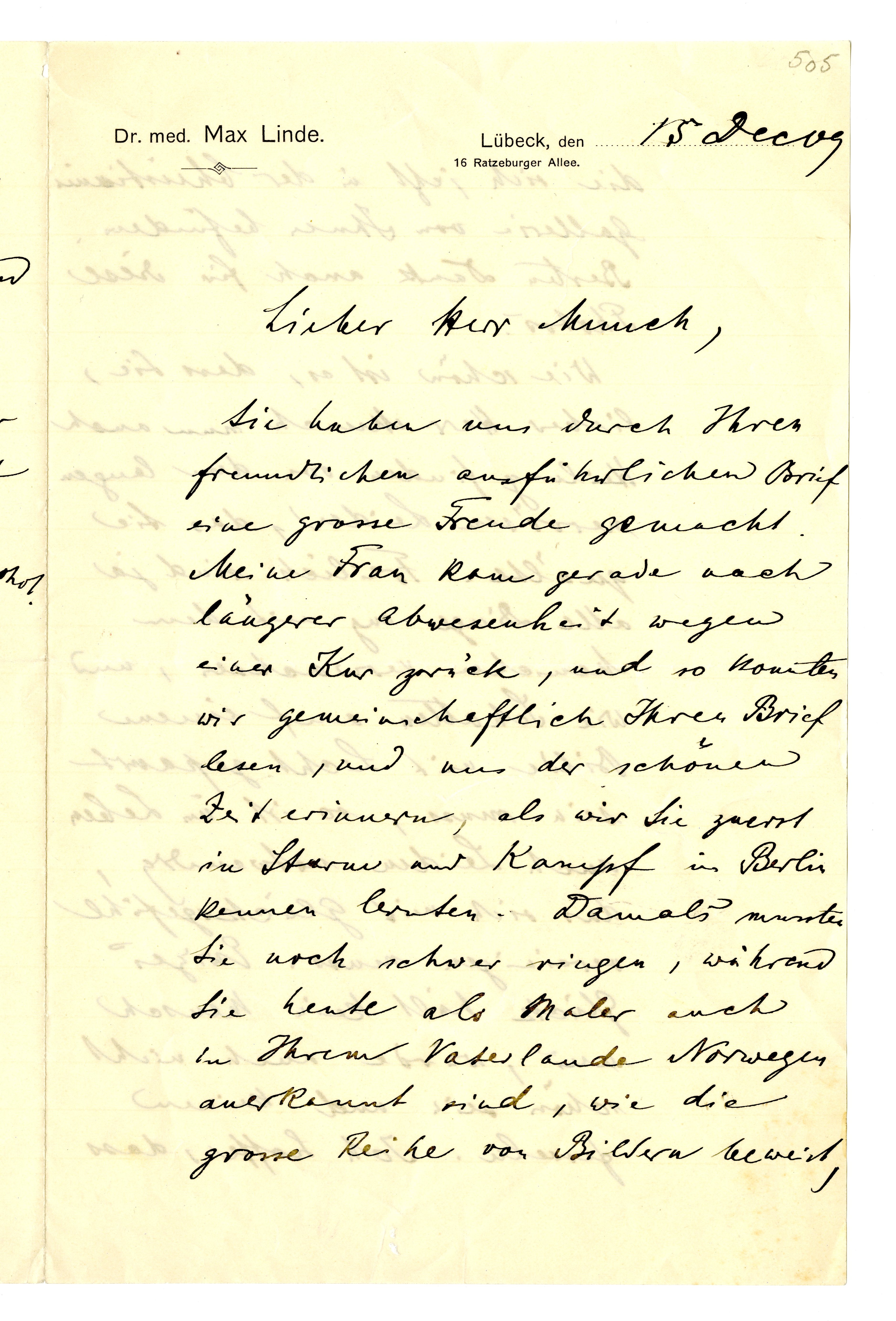 MM K 2832, Munchmuseet. Datert 15.12.1909. Brev fra Max Linde.
