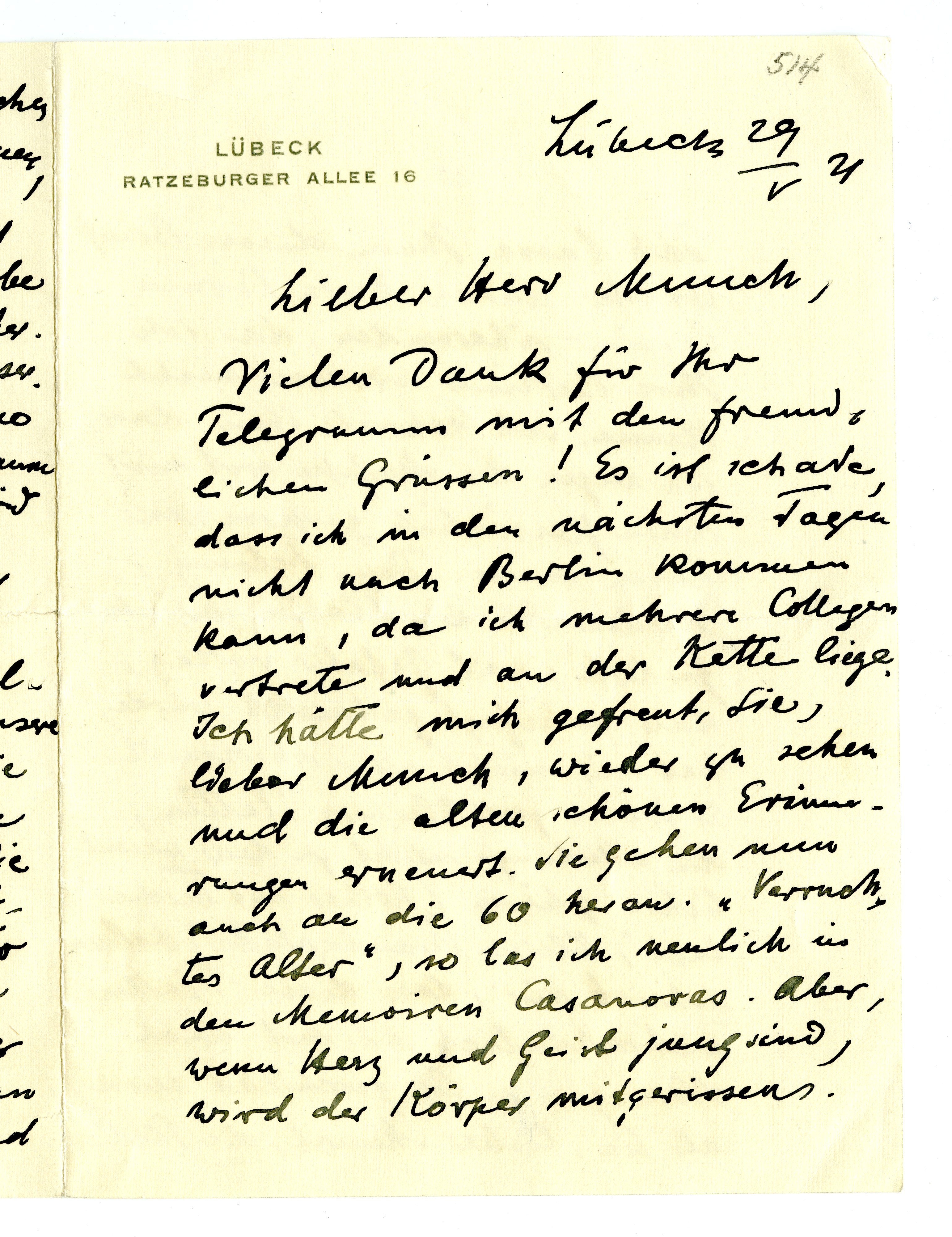 MM K 2841, Munchmuseet. Datert 29.05.1921. Brev fra Max Linde.