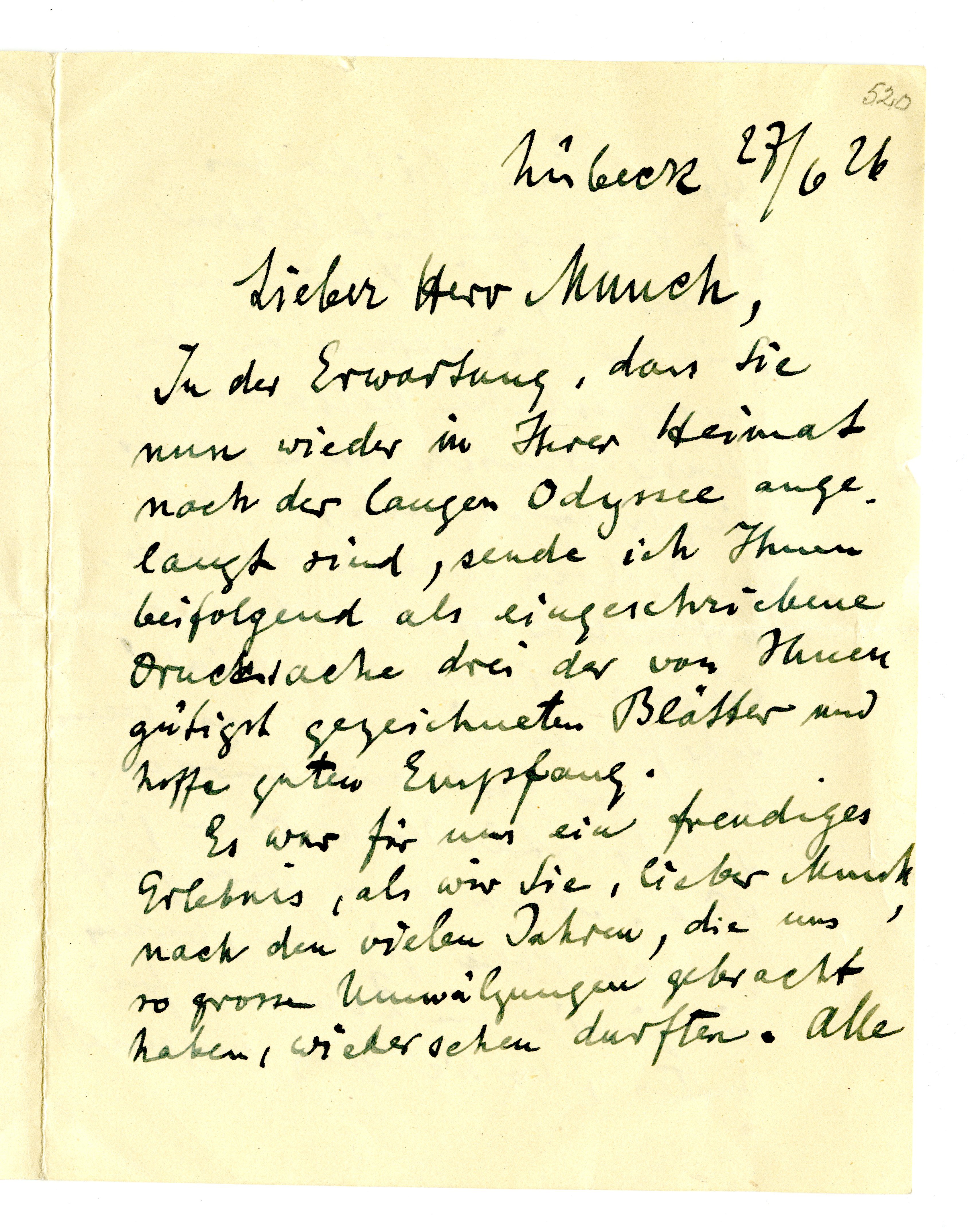 MM K 2847, Munchmuseet. Datert 27.06.1926. Brev fra Max Linde.