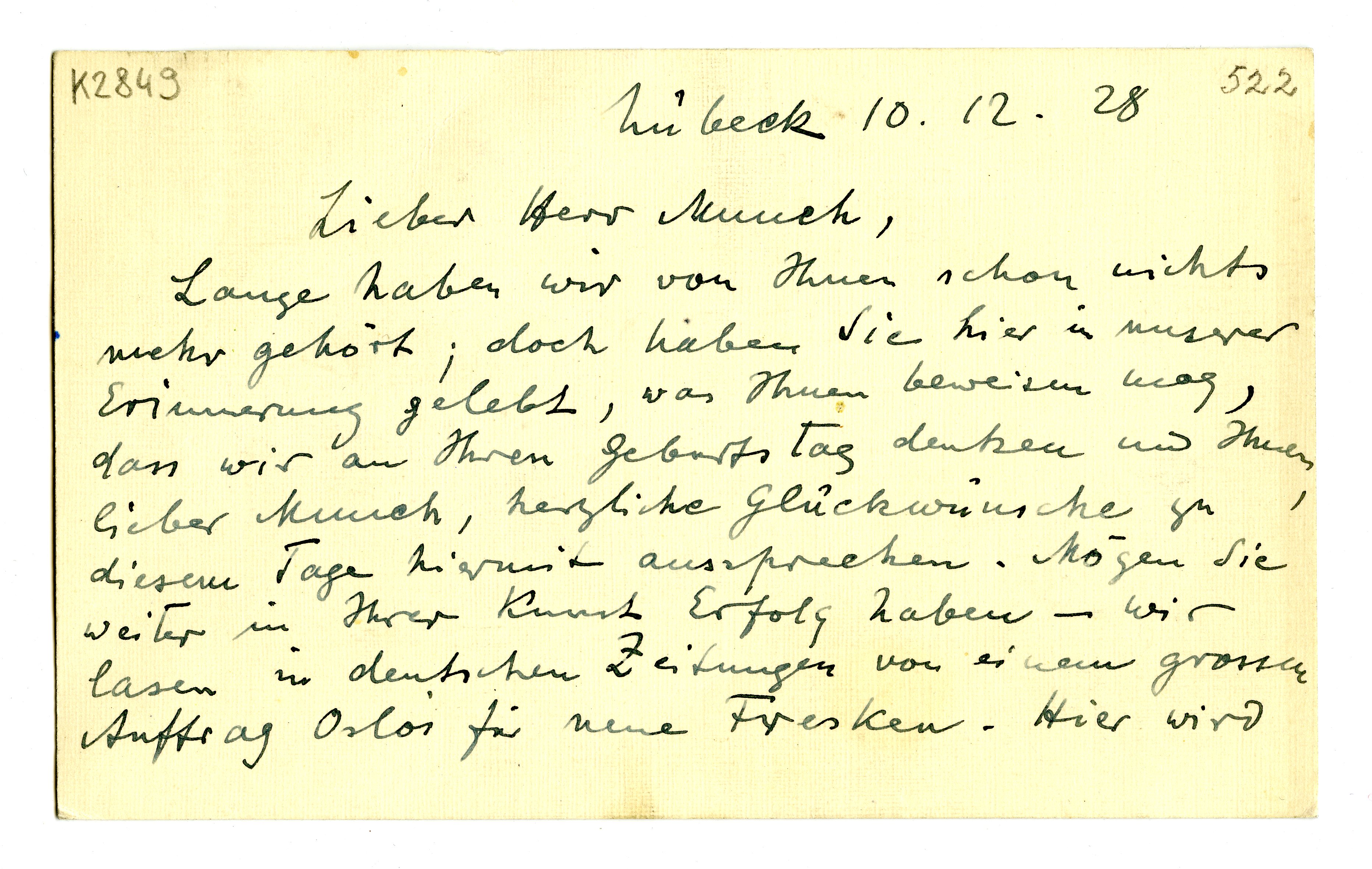 MM K 2849, Munchmuseet. Datert 10.12.1928. Brev fra Max Linde.