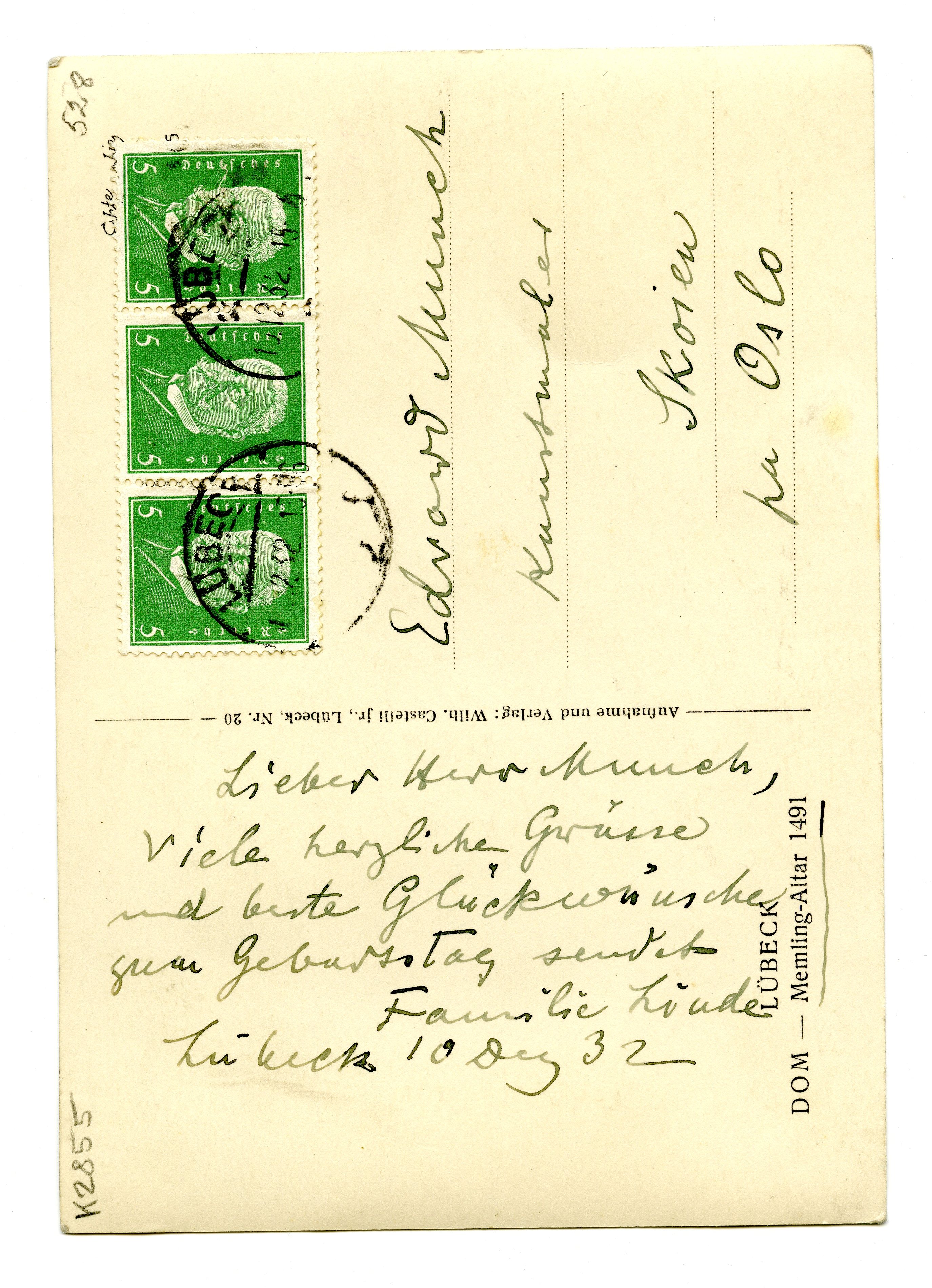 MM K 2855, Munchmuseet. Datert 10.12.1932. Brev fra Max Linde.