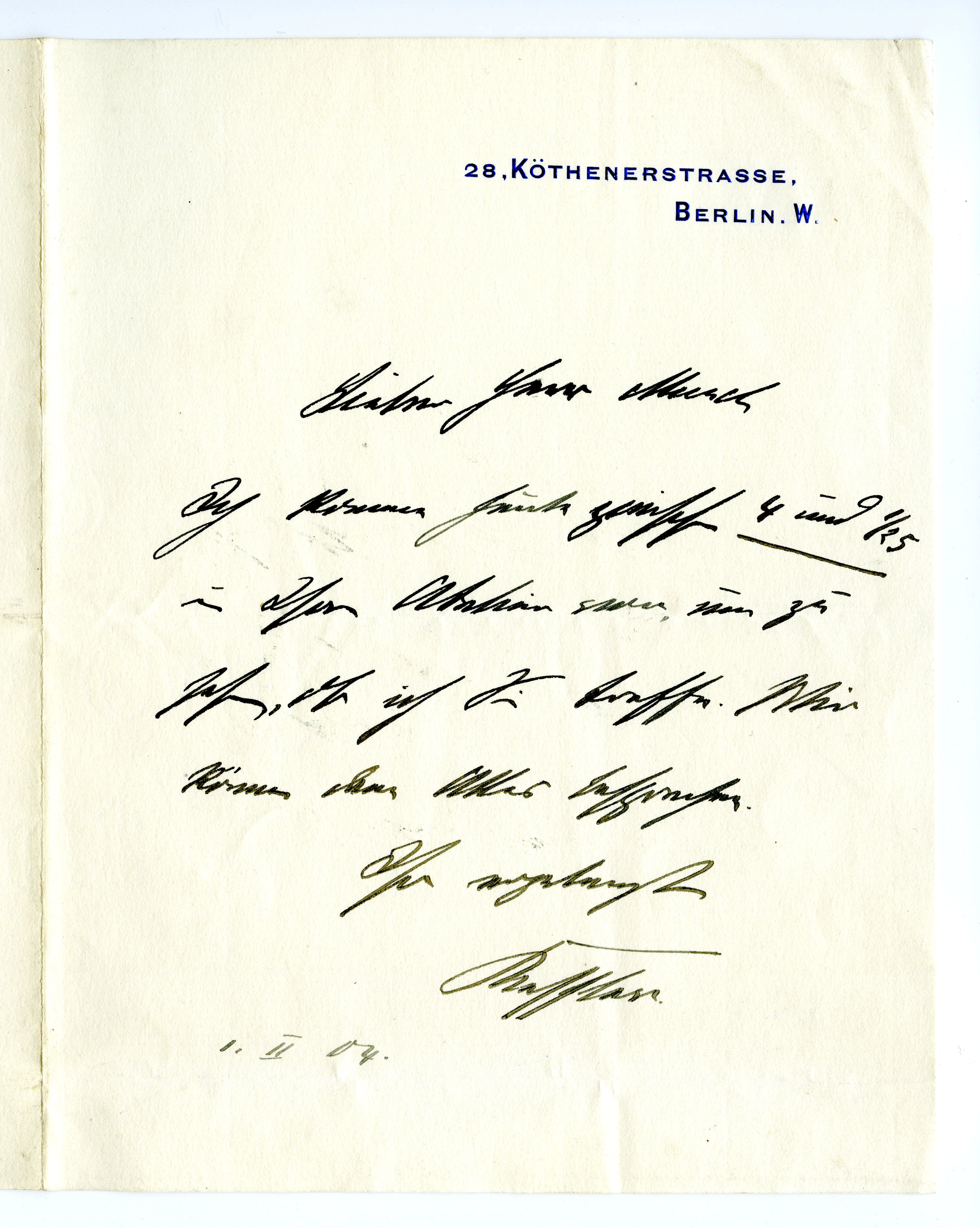 MM K 2869, Munchmuseet. Datert 01.02.1904. Brev fra Harry Kessler.