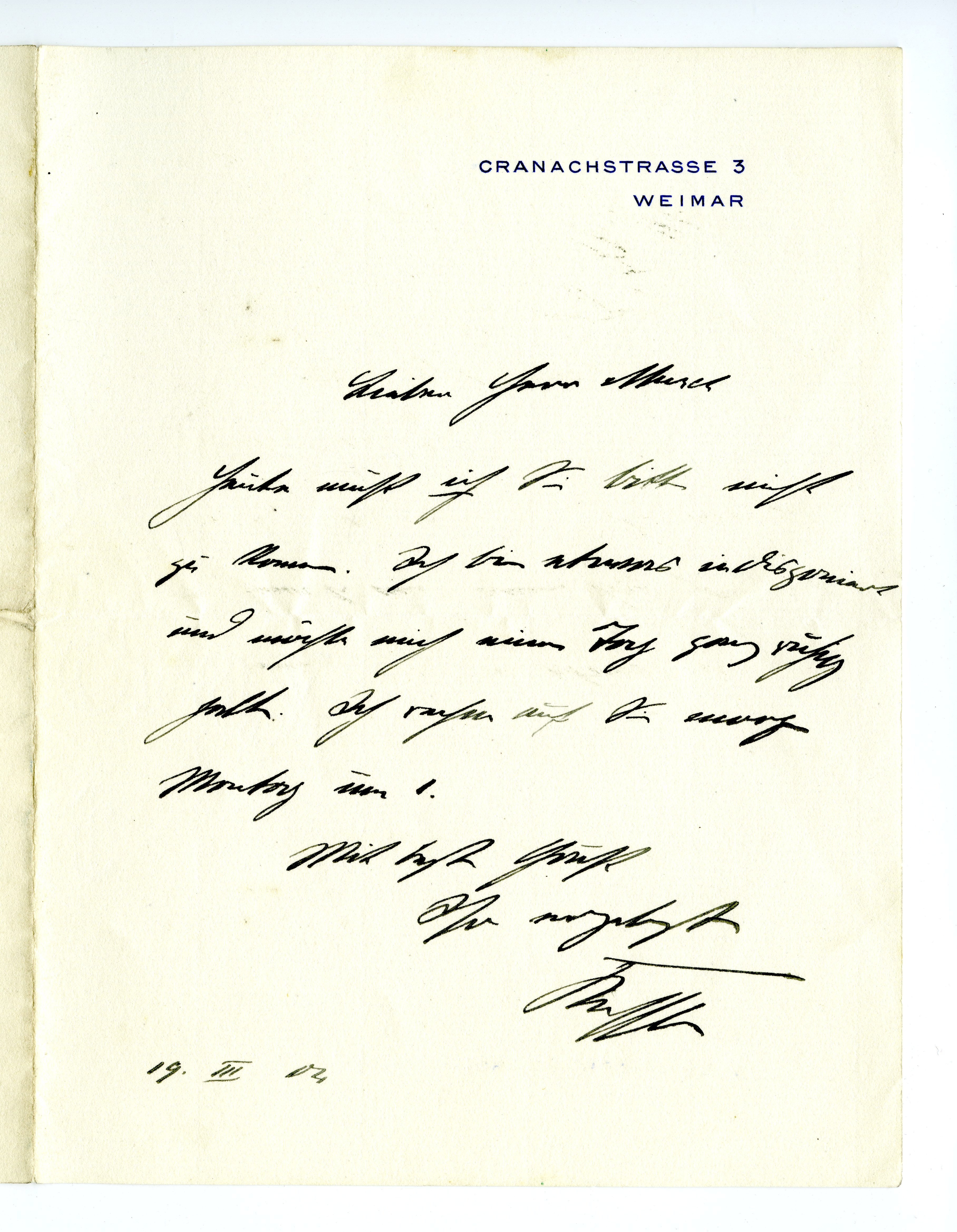 MM K 2872, Munchmuseet. Datert 19.03.1904. Brev fra Harry Kessler.